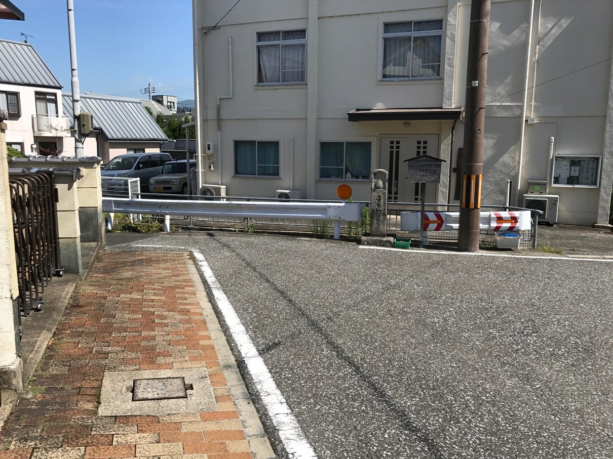 由篠村八幡宮水準點的位置,繼續沿402號府道向東南,走約1.2K遇丁字岔路9號國道,左轉沿9號國道向東南走約1.3K,在老ノ阪隧道西方約400公尺處找地方停車。在道路的南側路肩,即一等水準點1293號的位置,但找不到。旁邊也沒有水準點的標示牌。