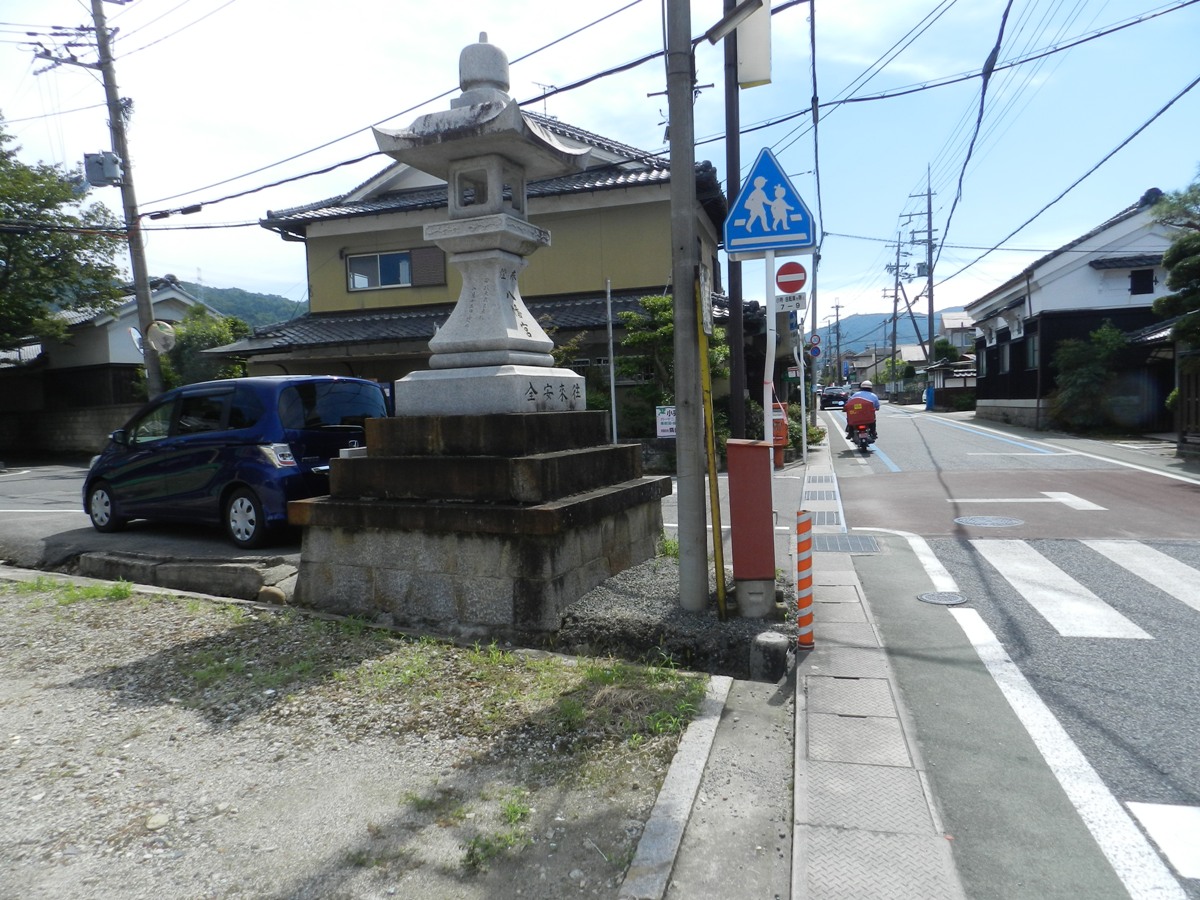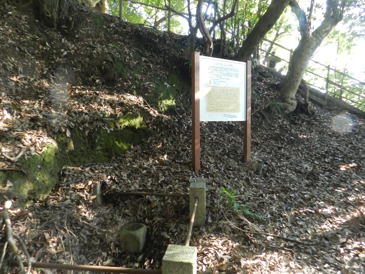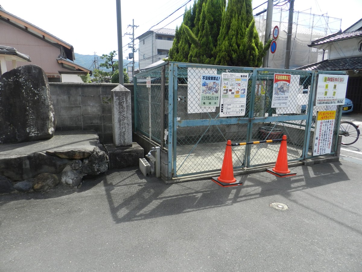 由JR山陰本線龜岡駅前的南口岔路口,沿403號府道向西轉西南走約600公尺遇十字路402號府道,左轉沿402號府道向東南走約180公尺遇右岔路6號府道,右轉沿6號府道向西南走約60公尺於路即將轉南時找地方停車﹝在西邊水溝的南北側各有一條右岔路﹞。