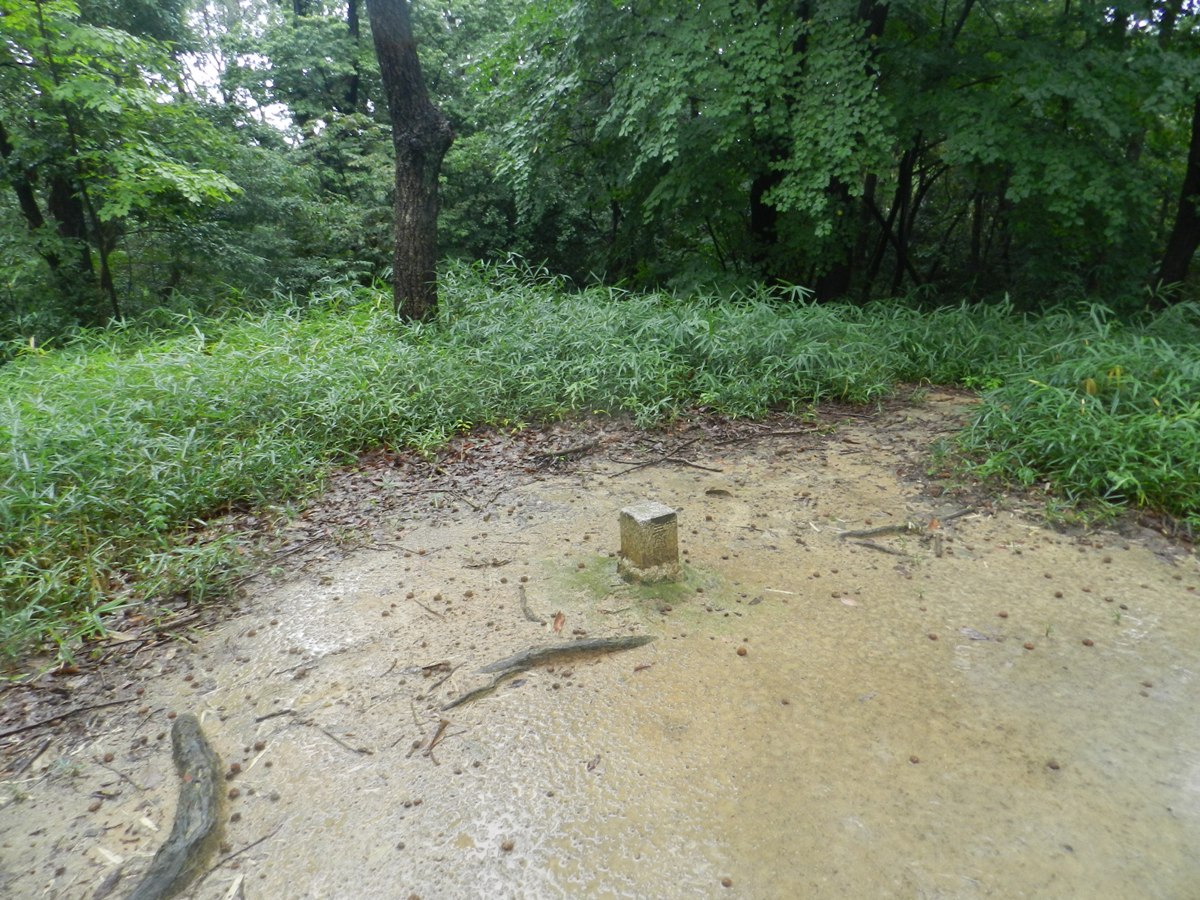 基石旁邊沒有護石,但有白色的三角點標示柱。