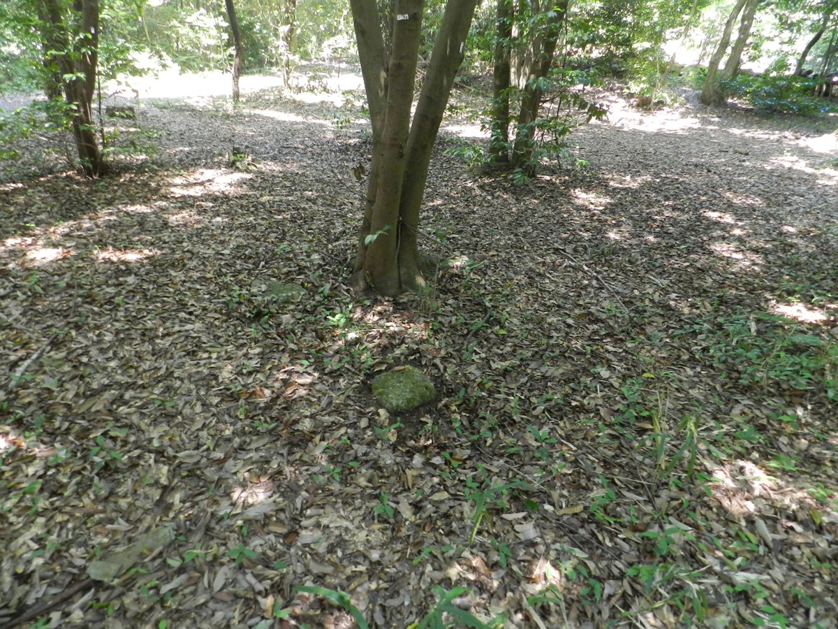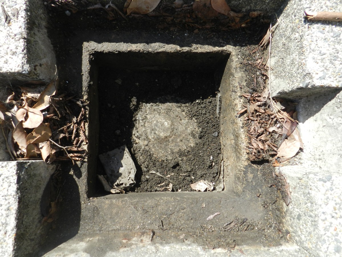 基石與地面齊平,三面被水泥及土石包住,只露出西面,所以看不到刻字和號碼,旁邊也沒有水準點的標示牌。