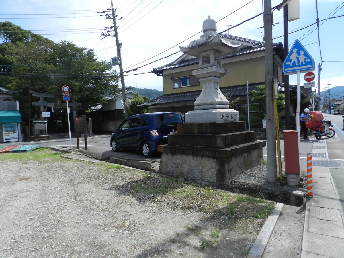 由篠町柏原水準點的位置,繼續沿402號府道向東轉南再轉東南,走約1.9K遇左岔路往篠村八幡宮時找地方停車。