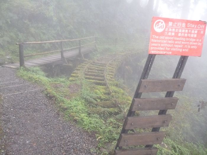 見晴懷古步道疊石親水區水濂瀑在霧中