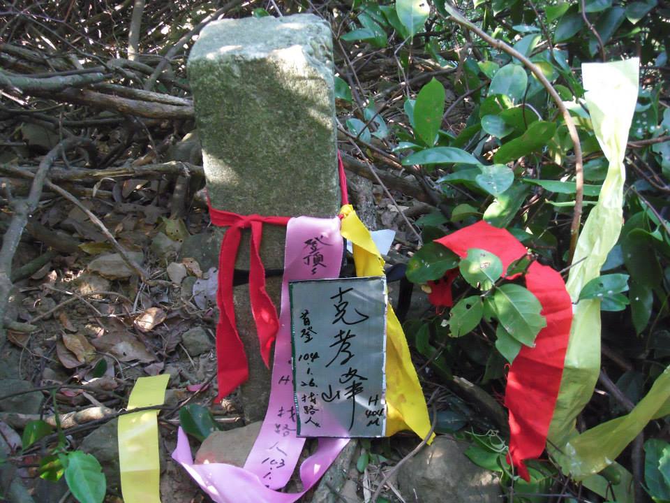 雙峰山南峰H404M,弟是1/26才首登成功,為紀念岳界名人林克孝,特取名為克孝峰,山頂有豎立水泥柱(附相片),唯目前山徑仍未整理完成,途中更須通過一段瘦稜...,以致未向您告知,真拍謝!