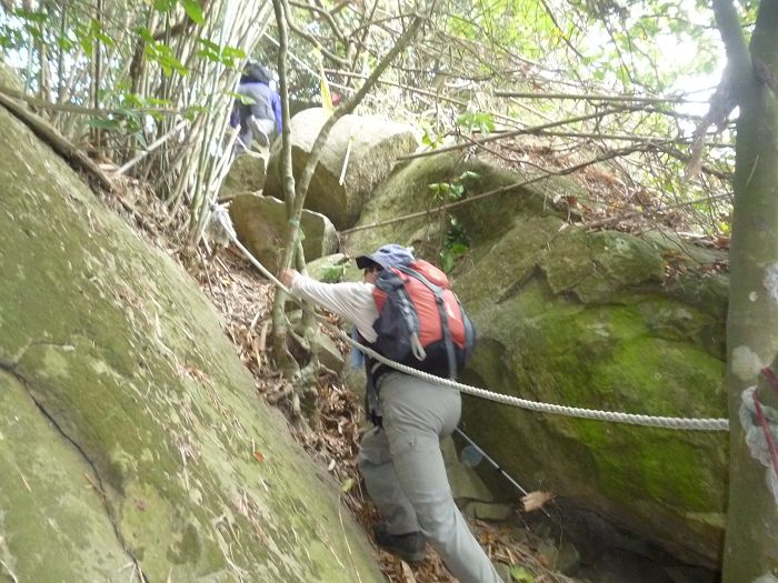 過靈山後亂石巨岩陡坡拉繩
