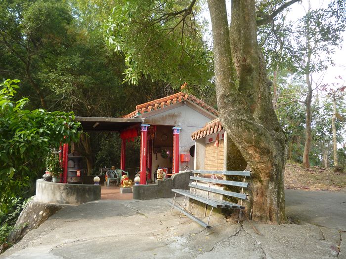 靈山稜鞍上的福德祠「靈頂天堂遙望峰巒,山明地秀平觀岡畔」