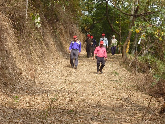 由第二登山口進入往月光山途中左岔下杉林取右行