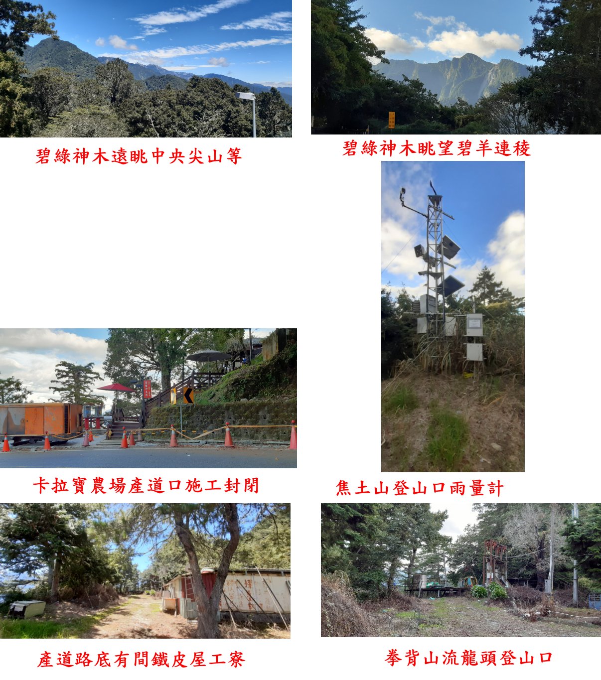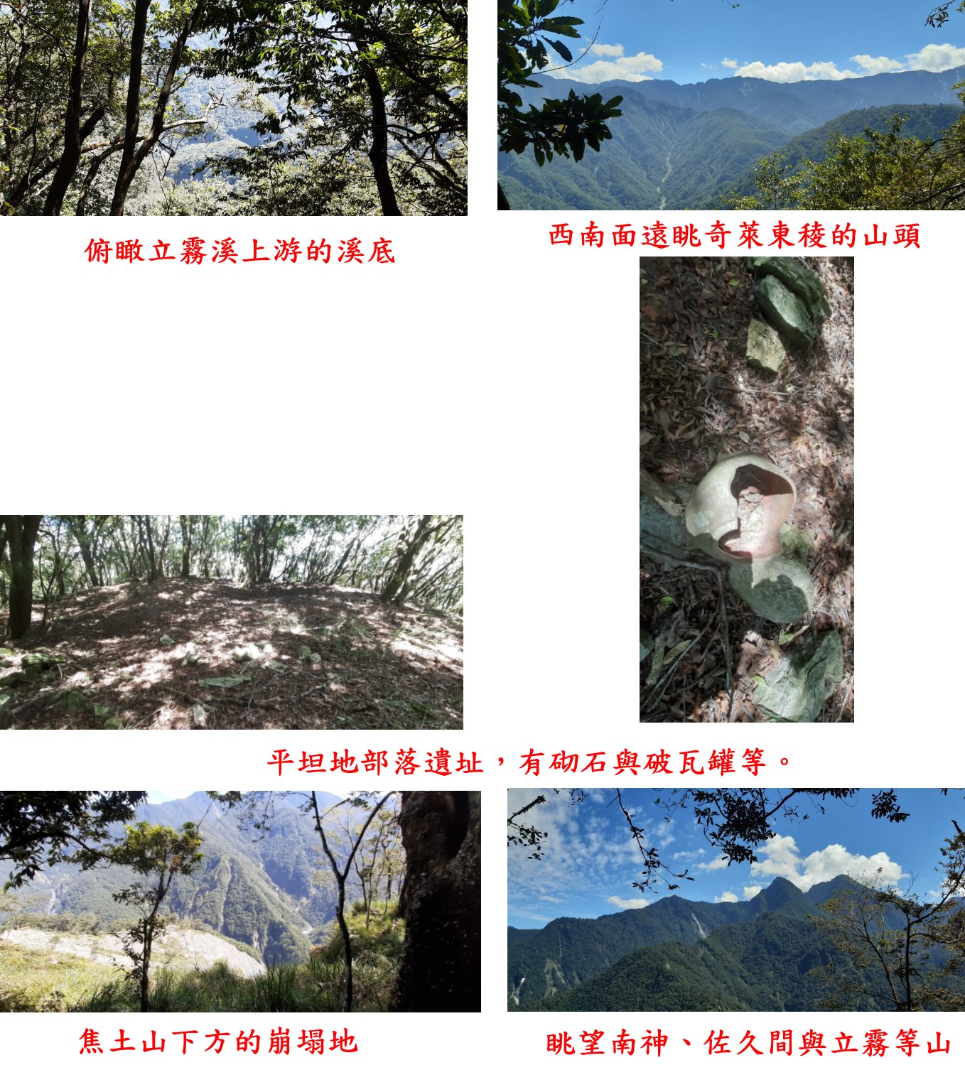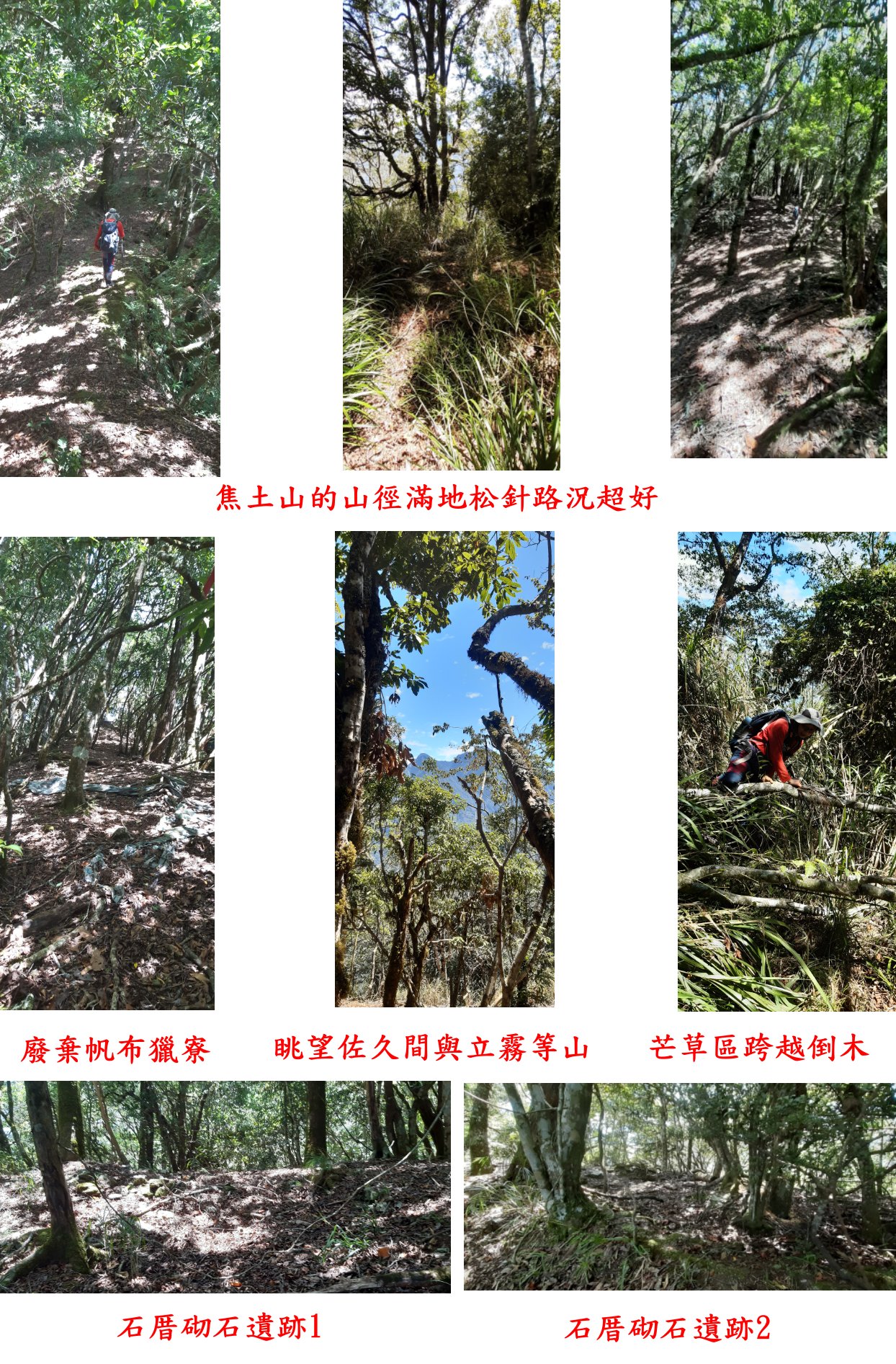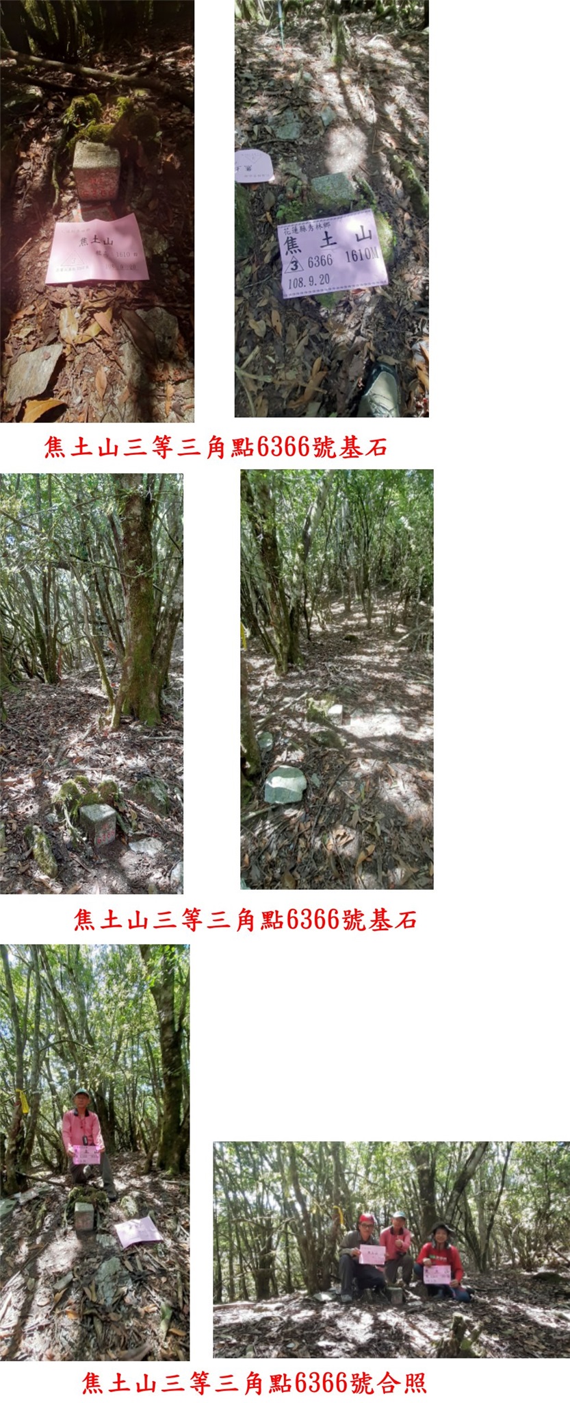 2、焦土山:位於花蓮縣秀林鄉,標高1610公尺,三等三角點6366號基石;座標292419 2674488。