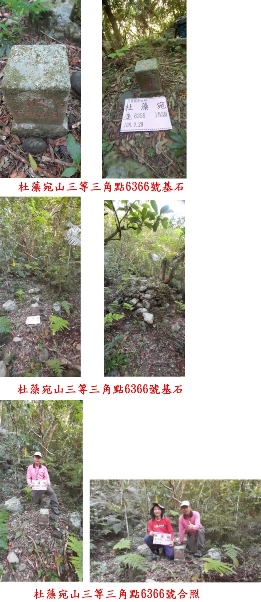 1、杜藻宛山:位於花蓮縣秀林鄉,標高193公尺,三等三角點6366號基石;座標309294 2674265。