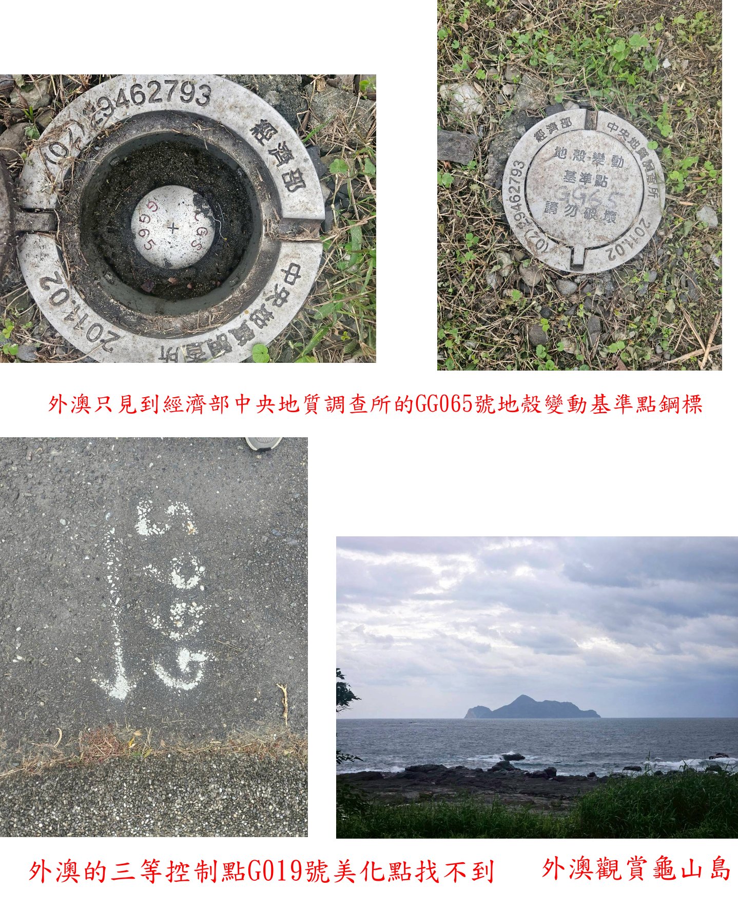 台2線112.35K的外澳觀景點停車,旁為外澳社區活動中心,外澳的三等控制點G019號美化點應在路旁,但卻四處找不到;只見到經濟部中央地質調查所的GG065號地殼變動基準點鋼標,G019號美化點由歷年的街景圖都看不到,此點不知為資料錯誤或是已遺失?