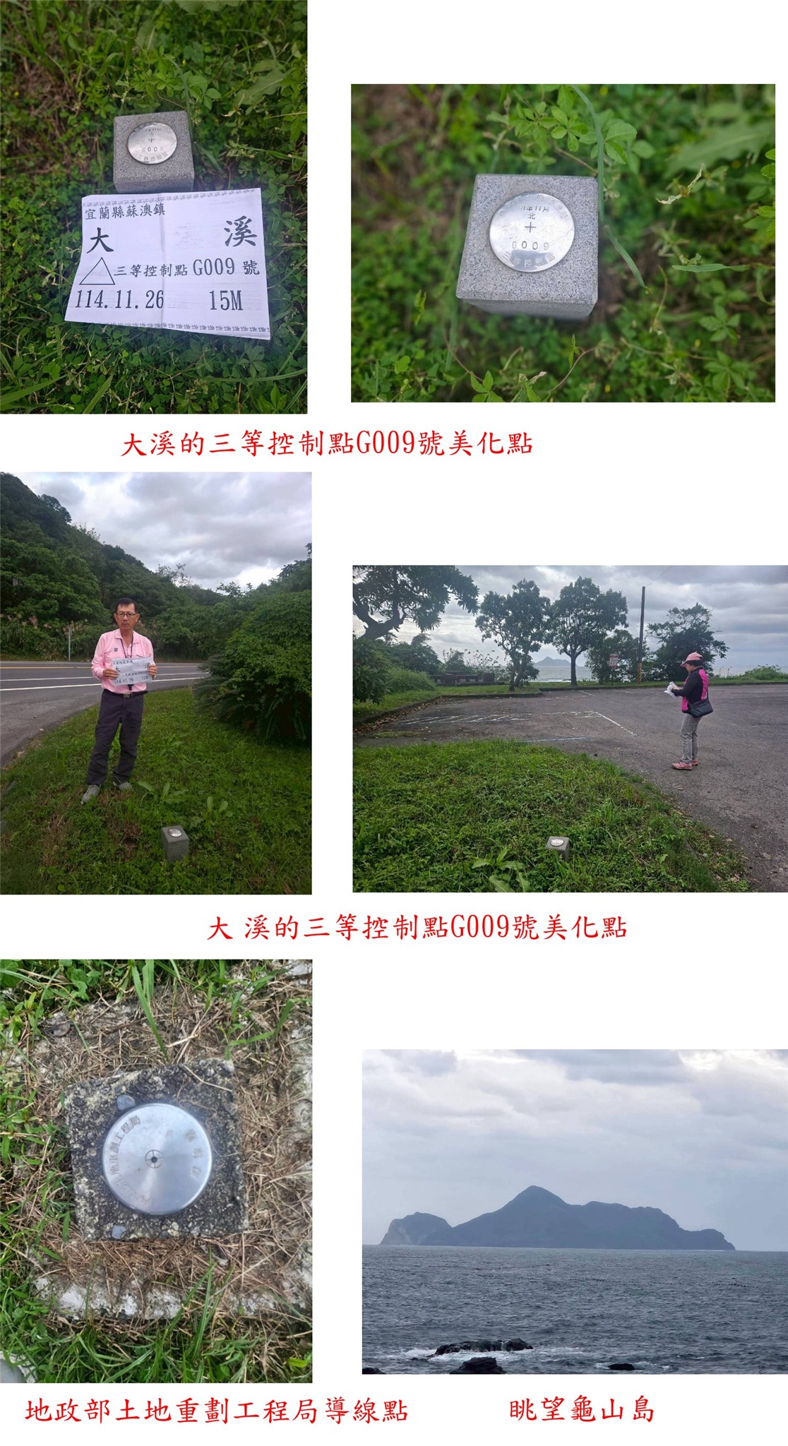 7、大溪:位於宜蘭縣頭城鎮,標高5公尺,三等控制點G009號美化點;座標341598 2761117。