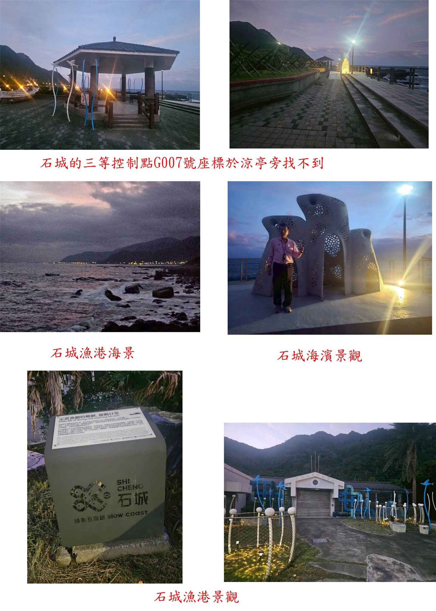 石城的三等控制點G007號美化點座標就在涼亭附近,周遭都走過了就是找不到美化點,海邊步道的高架花圃均為新完工的,G007號美化點由歷年的街景圖都看不到,此點不知為資料錯誤或是已遺失?找完此點天色已黑,驅車回至羅東與小妹於清香小吃店晚餐,懷舊的古早味菜色。