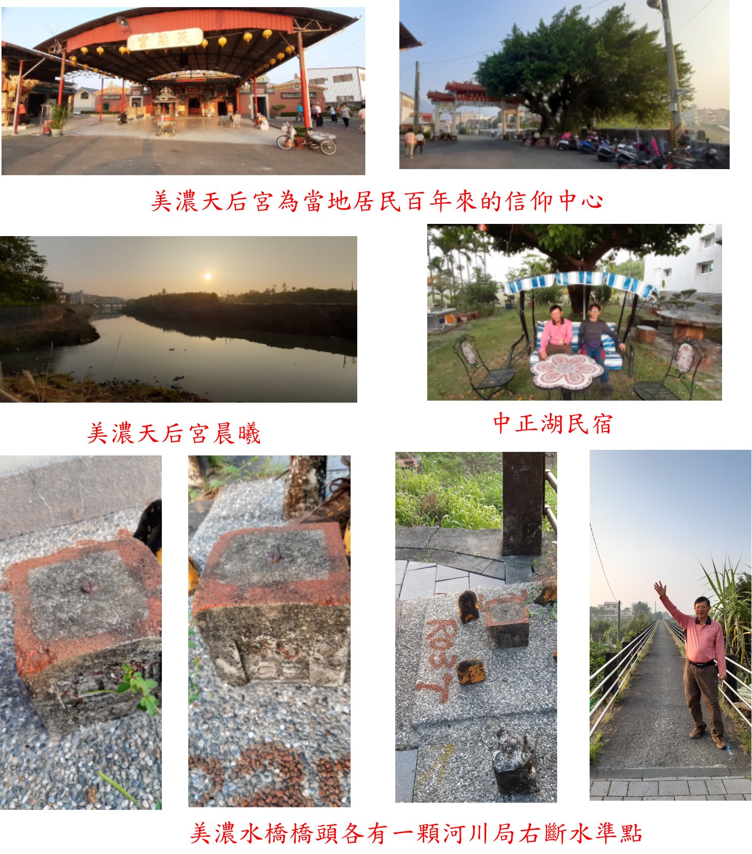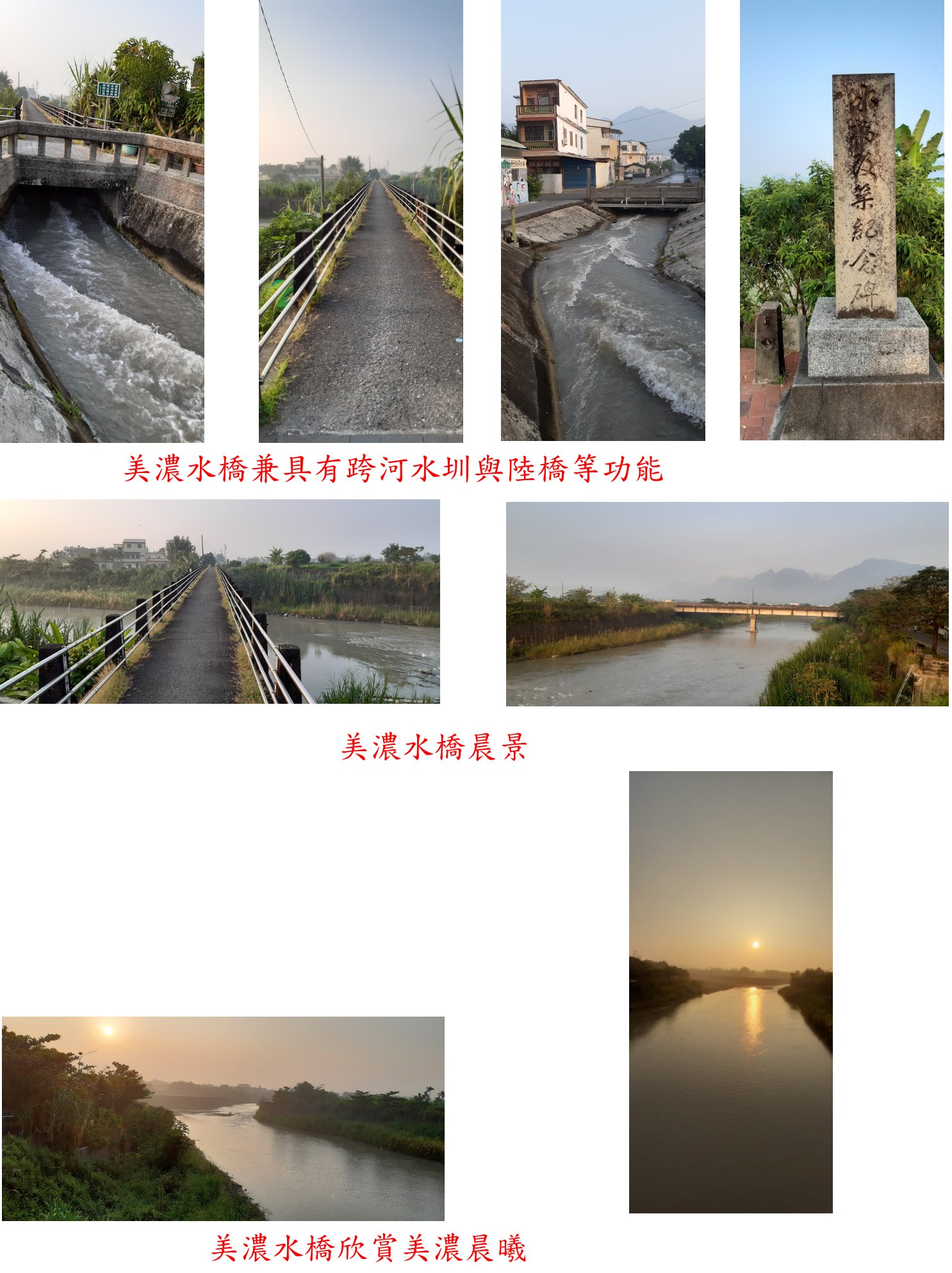 ◎昨晚去美濃水橋逛逛光線很暗,就在市區早上再去補拍照,此橋為市立古蹟建於日據明治年間,兼具有跨河水圳與陸橋等功能,橋上欣賞美濃的晨曦美景,橋頭各有一顆河川局右斷水準點;再來又順路去美濃天后宮拍張照片,此廟為當地居民百年來的信仰中心。