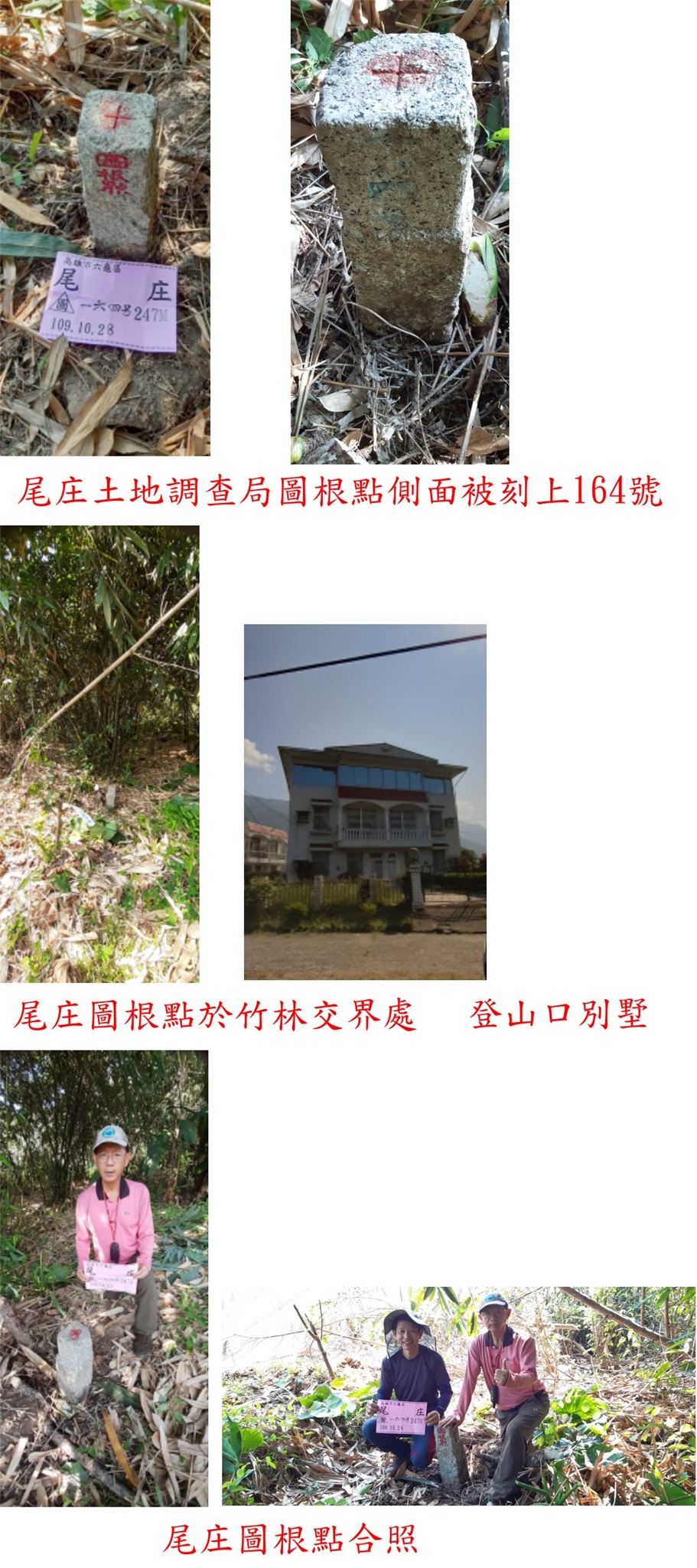 5、尾庄:位於高雄市六龜區,標高247公尺,土地調查局圖根點;座標212871 2542536。
