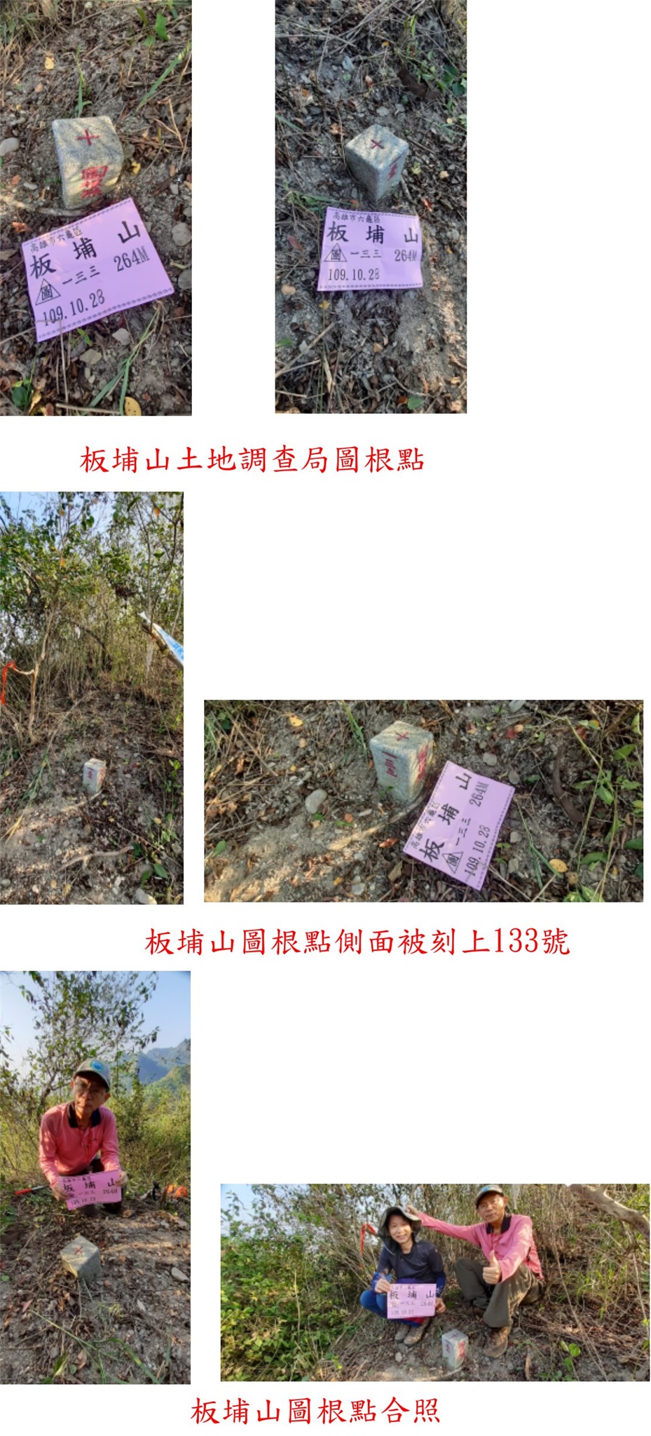 1、板埔山:位於高雄市六龜區,標高264公尺,土地調查局圖根點;座標212648 2537344。