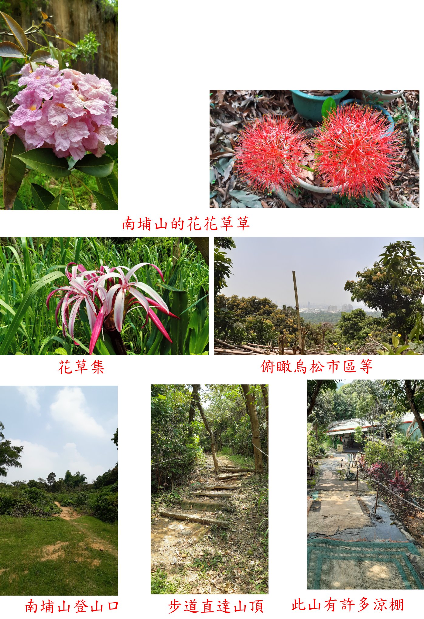 4、南埔山:又稱坔埔山或尖山嶺,位於高雄市烏松區,標高101公尺,土地調查局圖根點;座標186124 2508053。