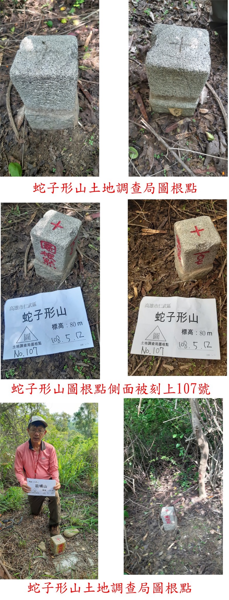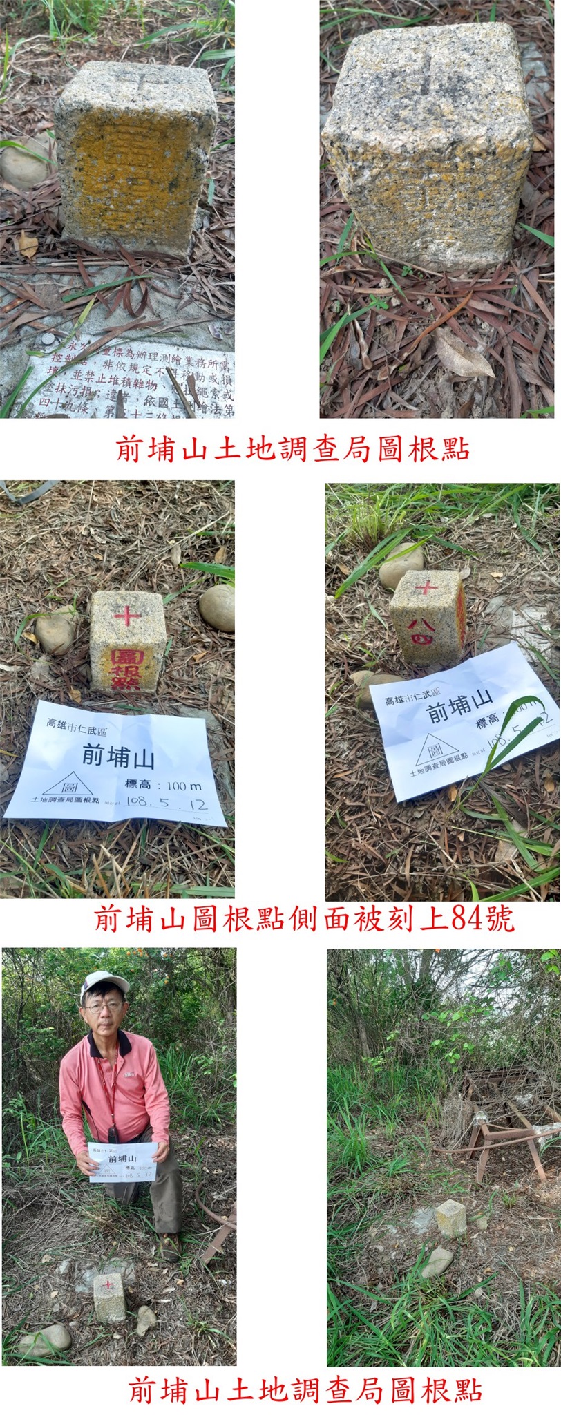 1、前埔山:位於高雄市仁武區,標高100尺,土地調查局圖根點;座標186071 2512980。
