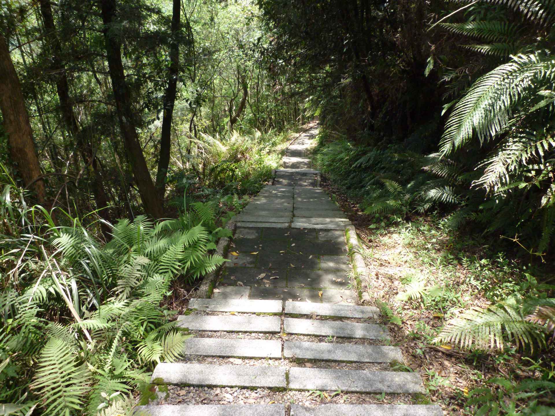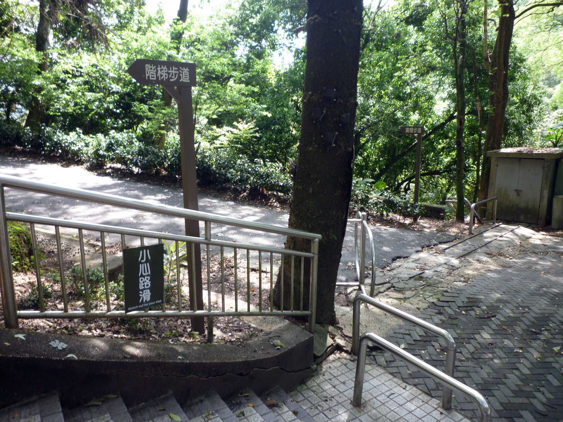 6由中心碑虎子山走階梯步道約250m抵T岔取右行。