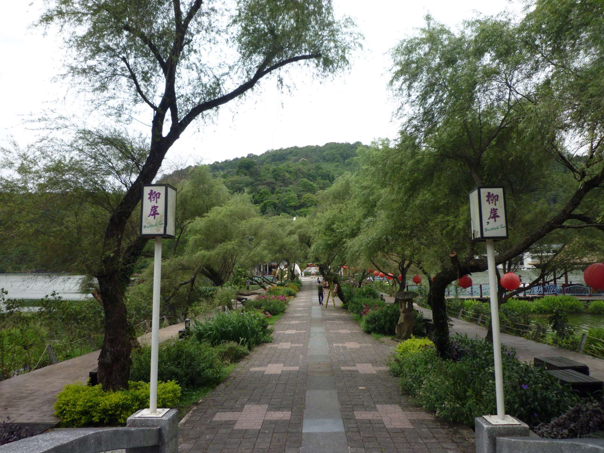 17鯉魚潭風景處楊柳飄曳,潭畔漣漪。