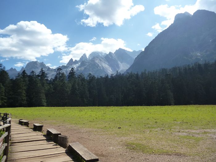 棧道草原相接連,白雲雪山聳九天(標高3240M)