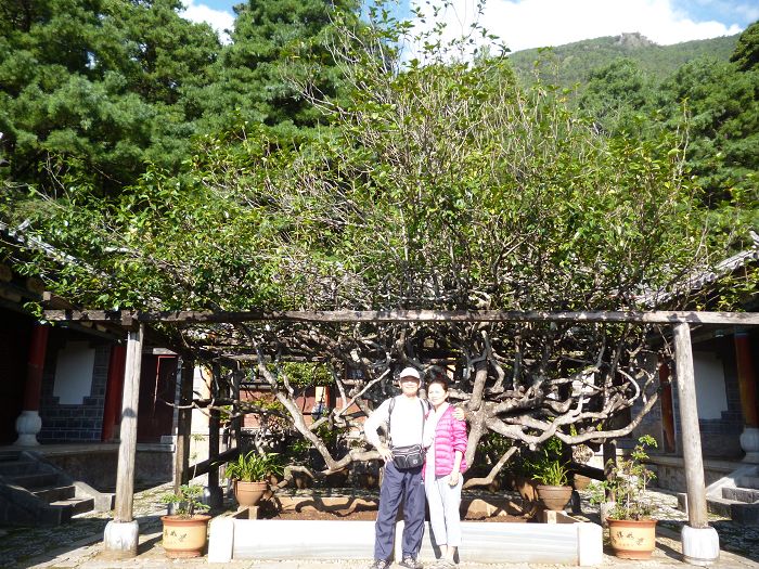 玉峰寺內萬朵山茶樹(合歡樹)前鶼鰈情深