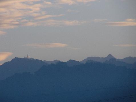 看來這張照片是從西南拍向東北 如果那顆是鳶嘴,那後方的高塔是小雪山2992M上面的轉播站 因為比較遠看起來不高其實比鳶嘴高了八百多公尺 又視角剛好和雪山西南稜平行所以認不出鳶嘴後面的船形山或鞍馬山 有好幾次天氣很好的時候尤其是夏天午後雷陣雨下過的隔天清晨 我常常五點多晴空萬里跑到大肚山(西屯)上去看中央山脈 玉山尖尖的在南南東方 然後可以看到東南東邊有山稜凹陷下去的埔里盆地後方就是干卓萬山塊 正東方是則是白姑山塊鎮守整個台中盆地 認的出鳶嘴和小雪山但看不到雪山 因為被雪山西南稜的大雪山等擋到了 但如果眼尖一點往東北方向仔細尋找可以看到好像一顆小正方形的大霸... 我第一次看到時超級興奮 不能上山只好在山下遙望的感覺很失落...