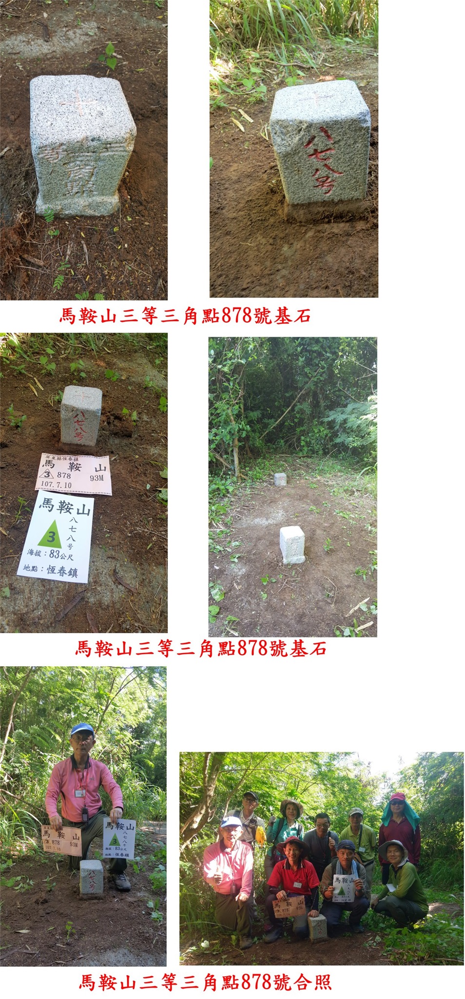 7/8-7/10約山友來屏東登山,第二天(7/9)首先去走真笠山西北峰省府圖根補點,此山後段土石路無法行車,多走2.3K的土路抵達登山口,全程無任何路條自行找路,爬升4百餘公尺,上山走1小時又54分,基石不在高點不太好找,此山往返3小時又35分鐘;第2座為涼山總督府圖根補點,上去只要2分鐘,曾來過陪大家再來一次;第3座為馬鞍山3-878,此山於核三廠管制區內,很幸運跟隨別的團體進入,由大門進入走22分鐘,最高點還有顆海11號水泥柱。