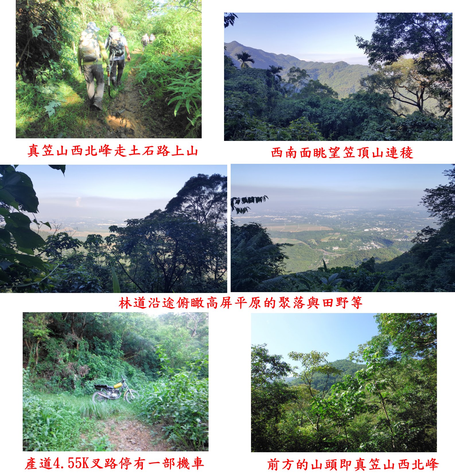 07:20出發,走土石路上山,視野頗佳,沿途俯瞰高屏平原的聚落與田野等,西南面眺望笠頂山連稜;早上清風徐來,走來頗為舒適。