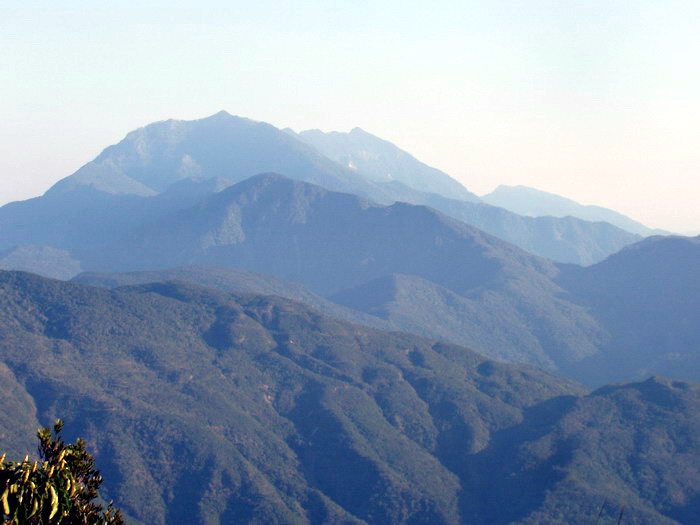 3月12日06:10帶著滿足的心情離開溫暖的睡袋,起床了!今天時間充裕,放慢節奏,好好享受山林美景!07:50打理好,與領隊阿鋒研討預計中午在溪底營盤吊橋吃午餐,阿鋒開車到大武轉入溪底營盤吊橋接駁,我們一行六人出發!循登山口產業道路前進約五分鐘聽見登山口車聲、人聲鼎沸,立刻用無線電和阿鋒詢問,回答:今天不會寂寞了!剛剛與四部小巴錯車,大約七、八十人!看來滿山遍野都是人希望不會太擁擠。北望南大武、北大武山清晰可見,上個月剛去北大武印象深刻,大武祠至三角點的稜線清楚呈現眼前,那段路讓我回味無窮,下次還想去!續行離登山口約20分鐘一岔路,取左進入步道,沿路濕滑泥濘,林相豐富,循鳥叫聲搜尋,樹枝間有許多不知名的鳥類,真的如前輩們說的放慢腳步仔細觀察、欣賞,讓心情沉澱,體會、享受大自然給我們的饗宴。步道走約十分鐘到達『州廳界』立一自導說明牌:標高1437公尺、此地終年雲霧深鎖,年雨量高達5200mm,又因地勢平坦易積水,是浸水營的由來。小休喝水,續行約5分鐘右側一岔路往姑仔崙山,暫且省略。仍然是一路下坡,心臟沒有爬坡那種強力脈動的感覺,原來我老婆說:你為什麼不找一條只有下坡的路給我走!這裡不就是,下次一定帶妳來!其實下坡一樣也是很累,出來走走活動筋骨,接觸大自然,讓身心享受無拘無束的感覺!