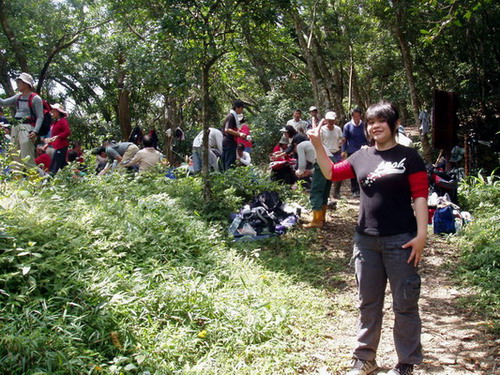 正當沉思中,忽聞步道有急促的腳步聲,遠處已見三員半百以上的大哥,邊跑邊往後瞧,好像深怕被自己的隊友趕上,這種跑山的方式還不如在操場跑步比較安全,不過也不能評論他們,也許他們就是以這種方式登山樂在其中!