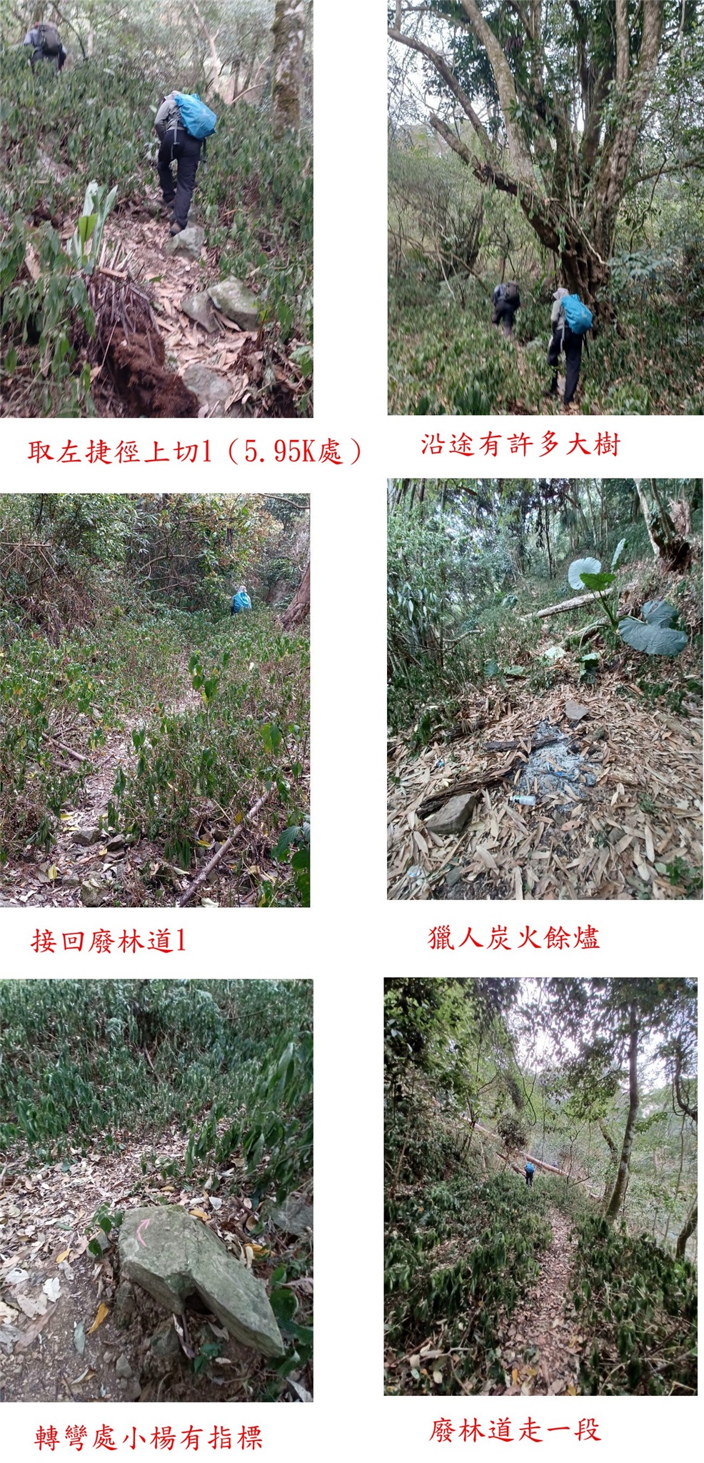 07:42取左捷徑上切1(5.95K處),高1271公尺,有老舊路條可跟,沿途有許多大樹。