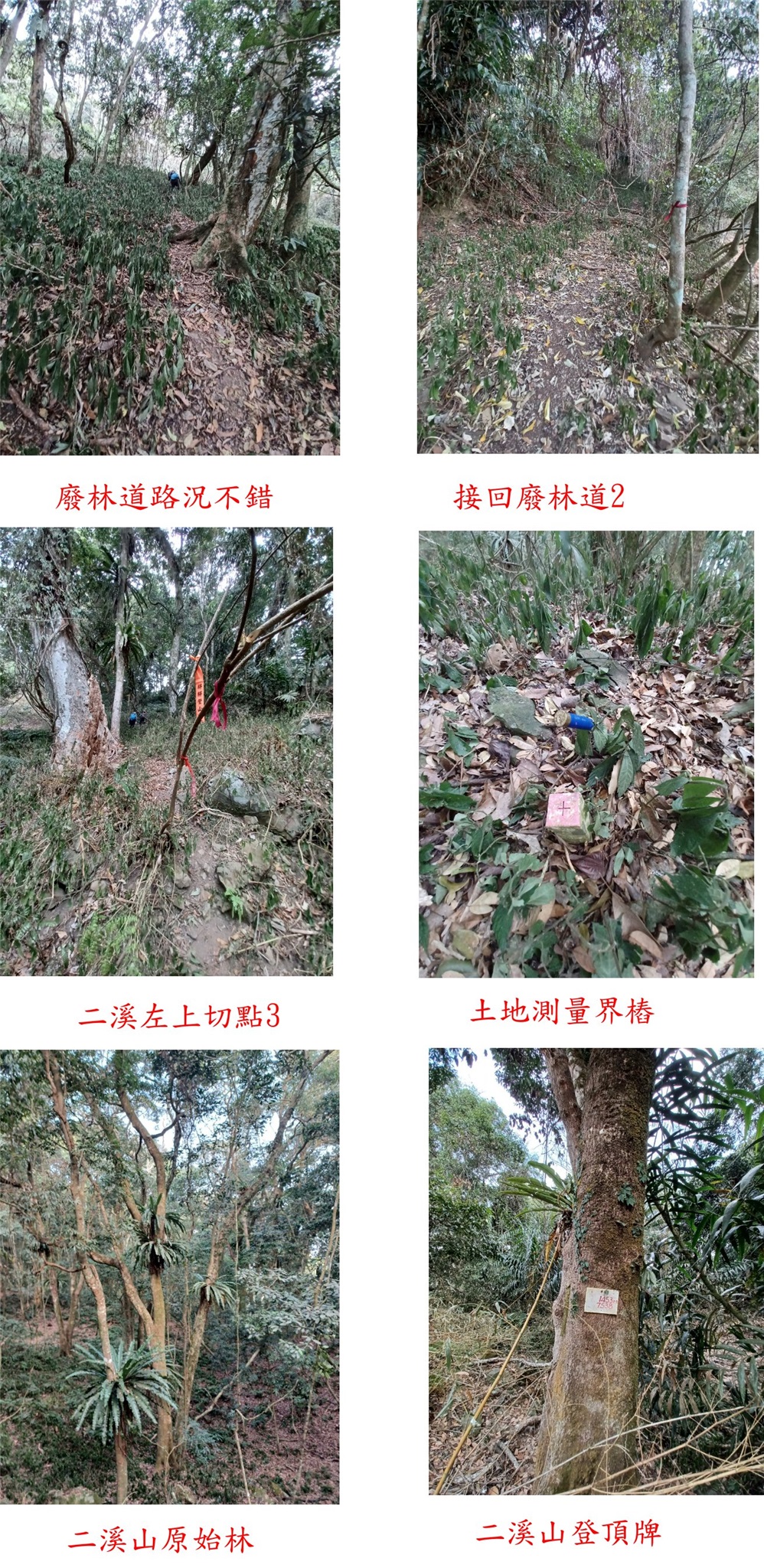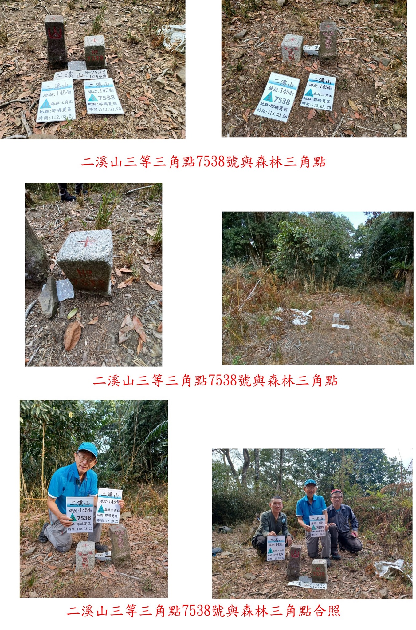 3/18-3/20約山友來南部登山,第3天(3/20)早上先去走二溪山,清晨由甲仙出發抵達瑪夏區台20線0K起點,右轉溪底道路走段路況差的便道,再來接到水泥農路至5K停車;走廢棄林道上山至5.95K處,上切數度跨越廢林道,走58分鐘登上二溪山,有3-7538與森林三角點等2顆基石,感謝小楊剛來過還陪我們二刷,拍照後原路回到停車處,往返費時2小時又1分鐘,此山於一溪山至九溪山中應屬最和藹可親。