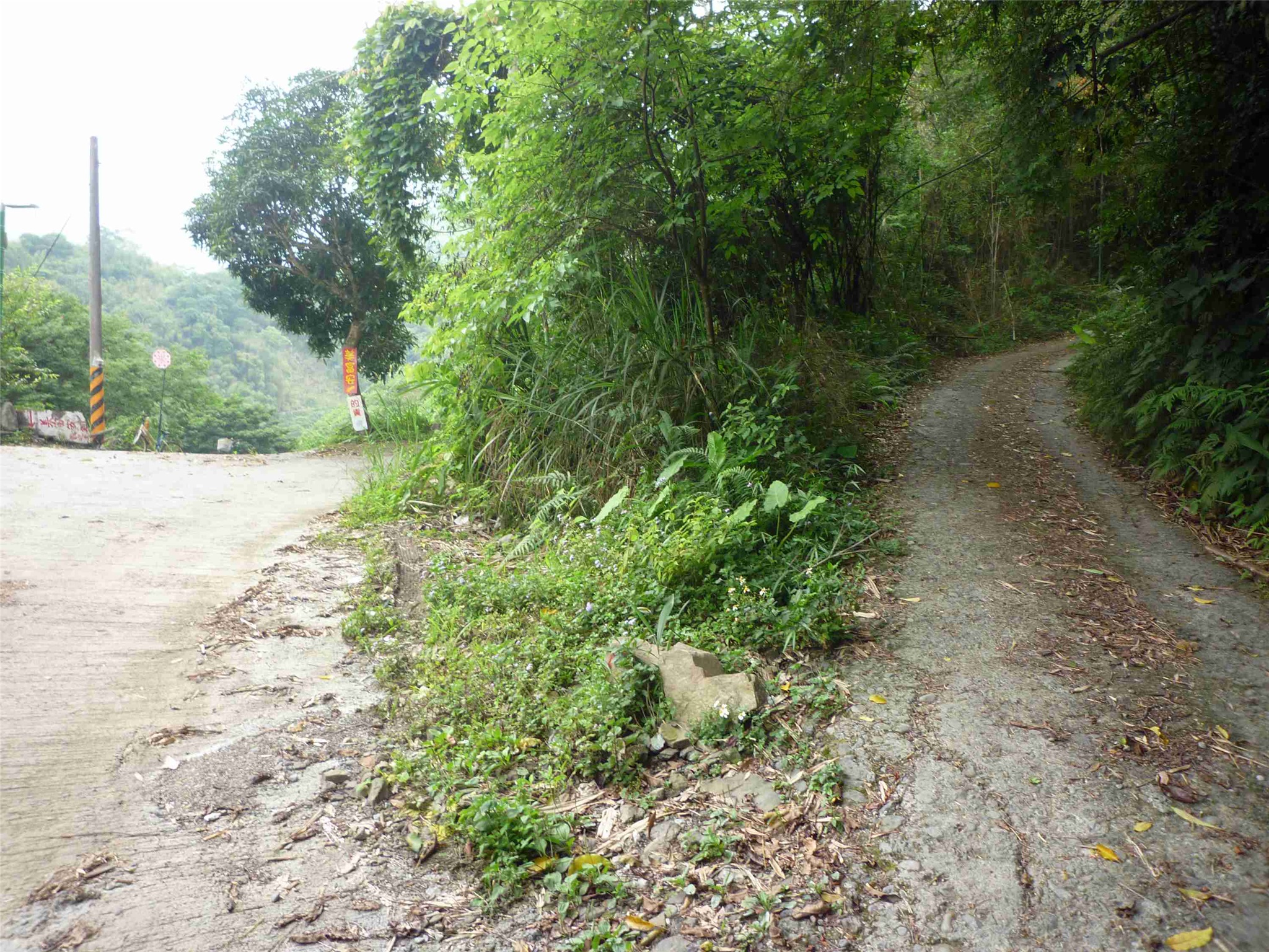10走到「永象幹25分22」電桿岔,取右上廢水泥路和產業路陡上