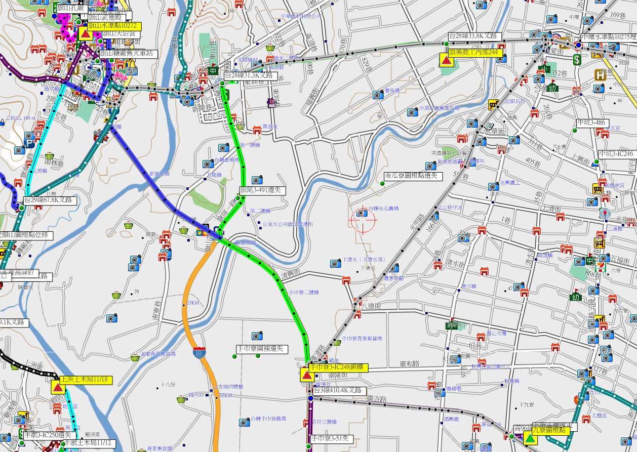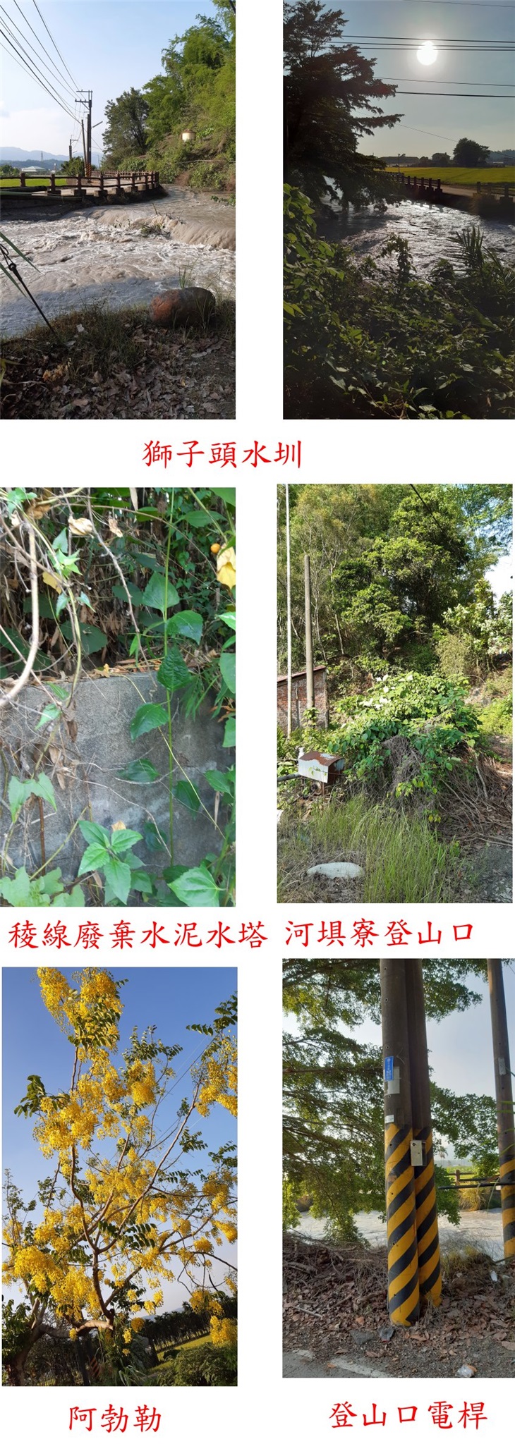 由河埧寮山走獅子頭水圳旁道路彎繞計走3.6K,左轉台28線(中興路一段)走3.1K【33.8K叉路】,左轉小路走