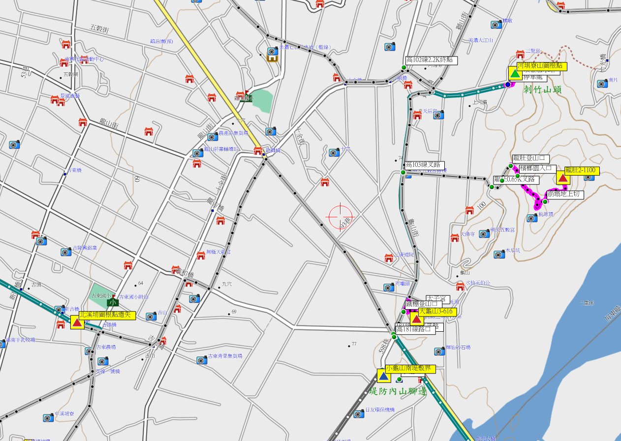 1、河埧寮山:位於高雄市美濃區,標高102公尺,土地調查局圖根點;座標205408 2529697。