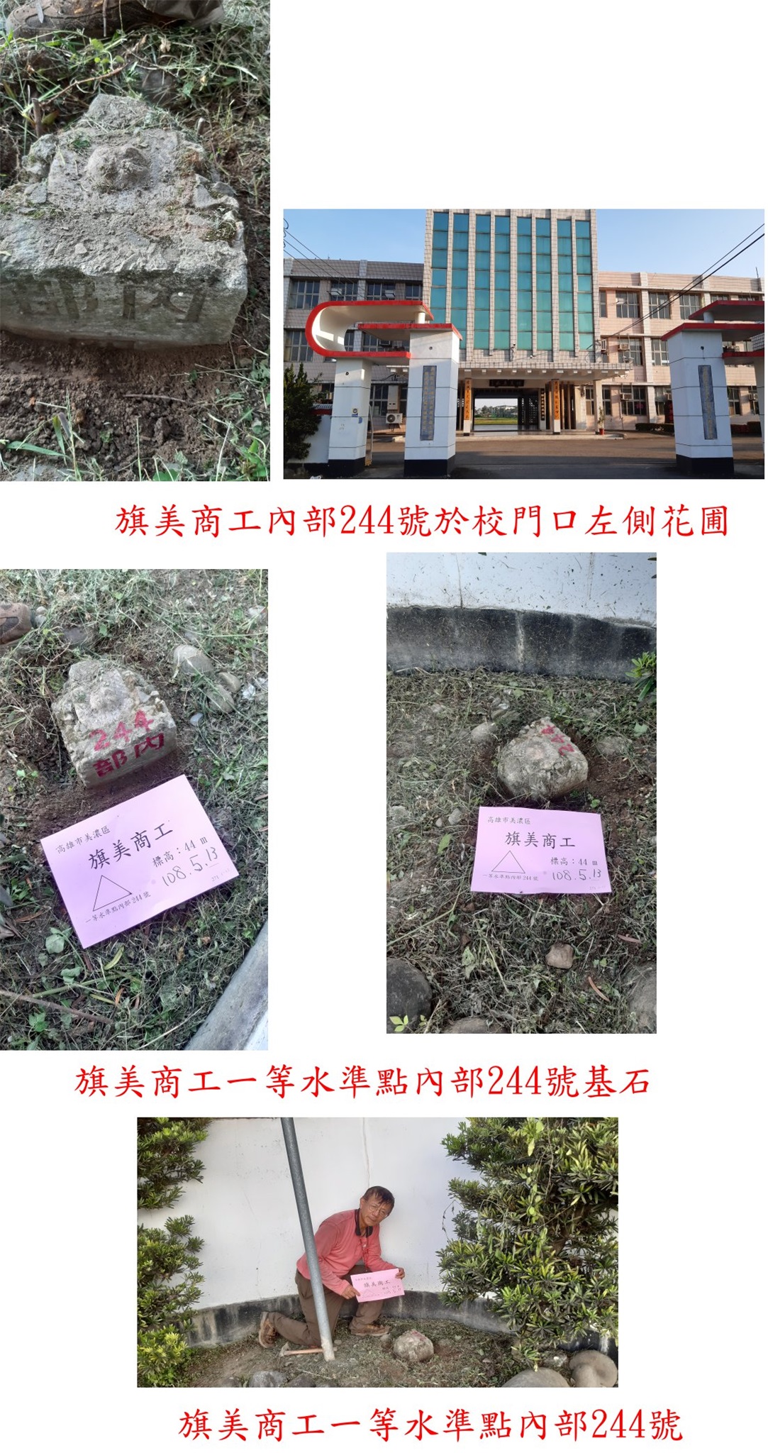 於校門口左側的小花圃中見到旗美商工一等水準點內部244號,基石露土不高腰稍微挖一下才能拍到號碼。