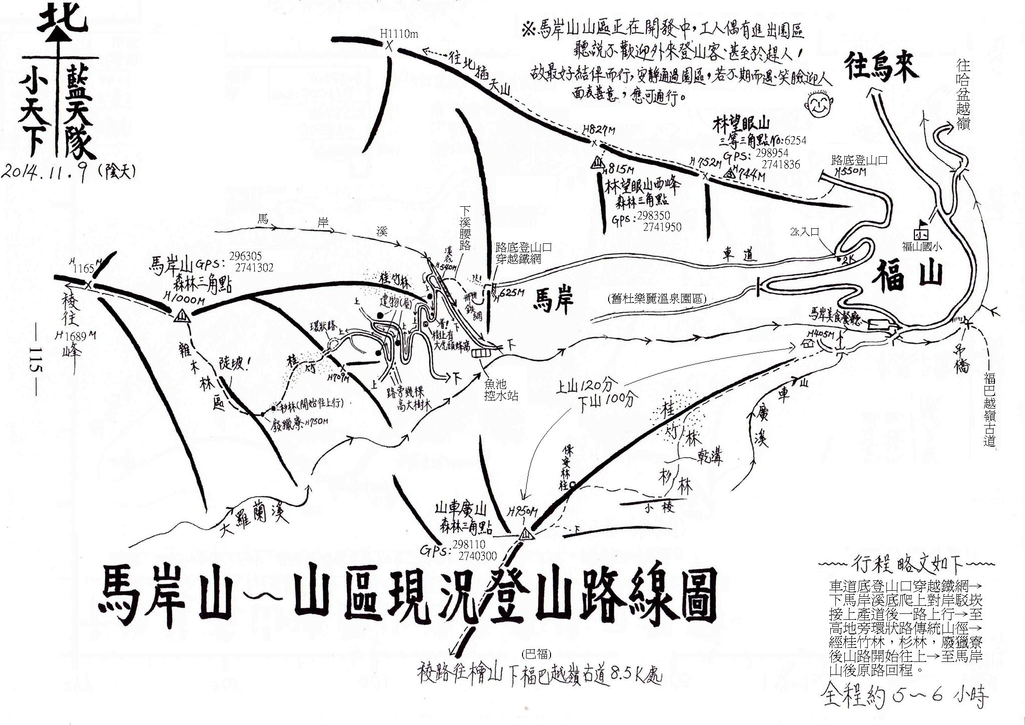 (十二115) 馬岸山山區現況登山路線圖2014年