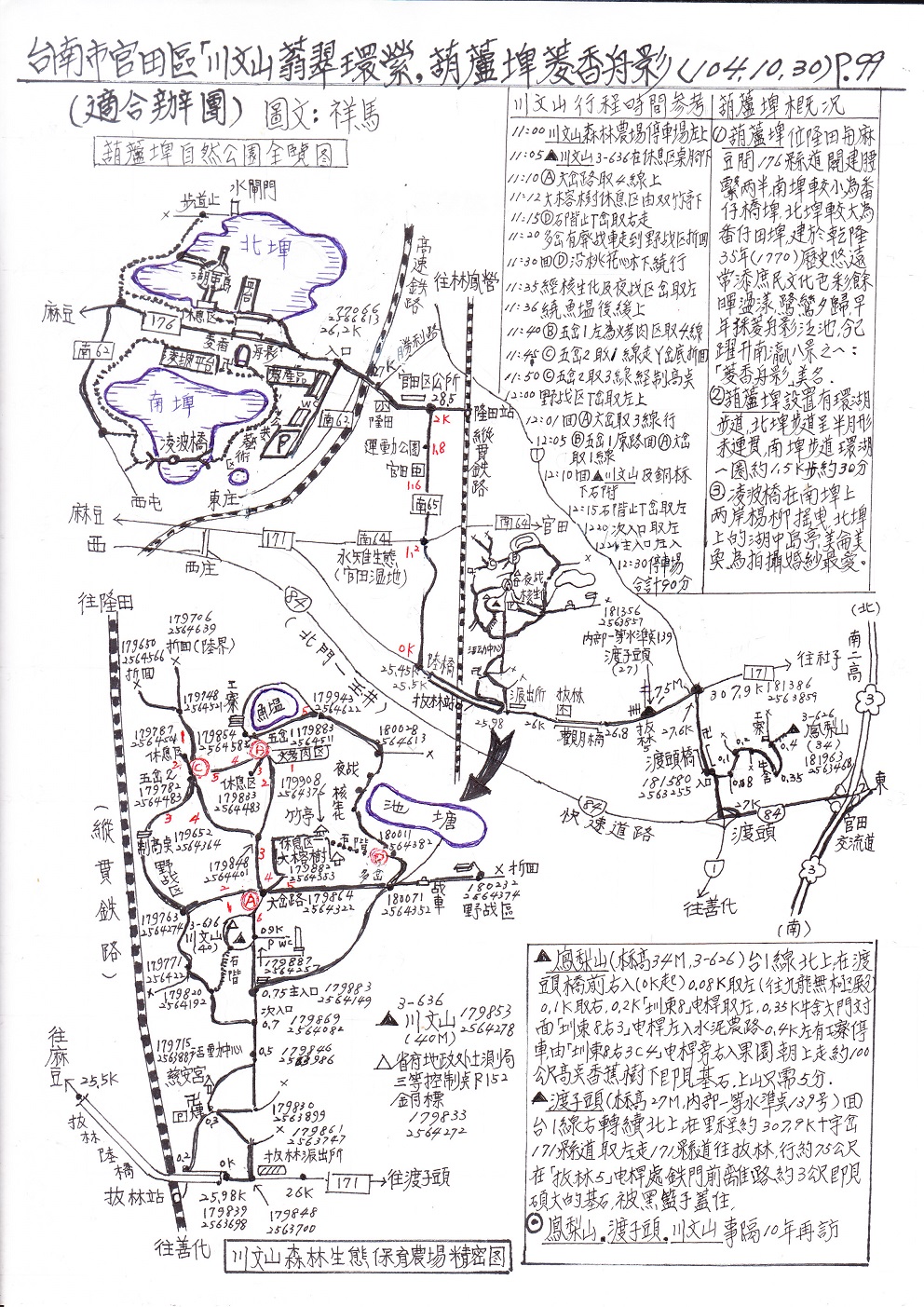 7.續行171縣道經觀月橋往麻豆在里程近26K拔林陸橋前由拔林派出所右入往川文山森林生態保育農場