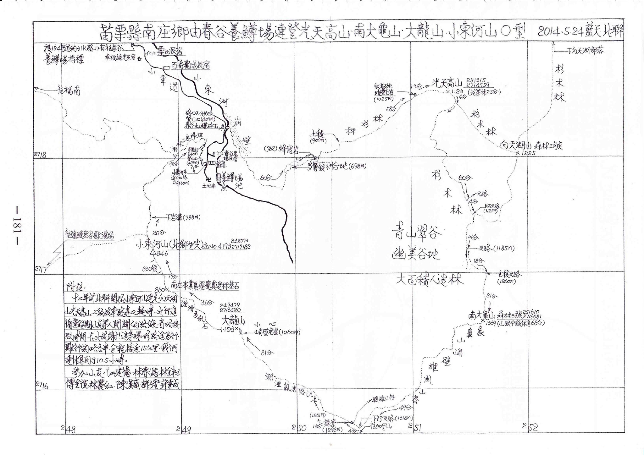 (十一181) 由春谷養縛場連登光天高山、南大龜山、大龍山、小東河O行
