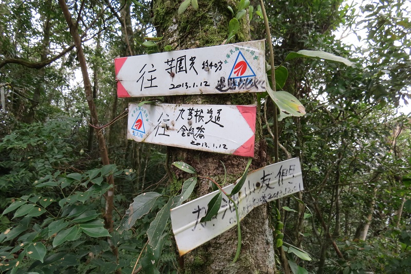 芋園尖三叉(1102)九芎根步道主線直行向下,左叉小徑往芋園尖40分。