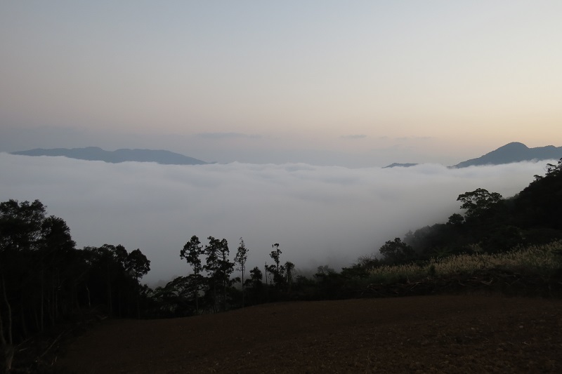 產道開墾地(0632)續行接上水泥農路與開墾地,此時天剛亮壯麗雲海出現,山徑在水泥農路右側十數公尺處。
