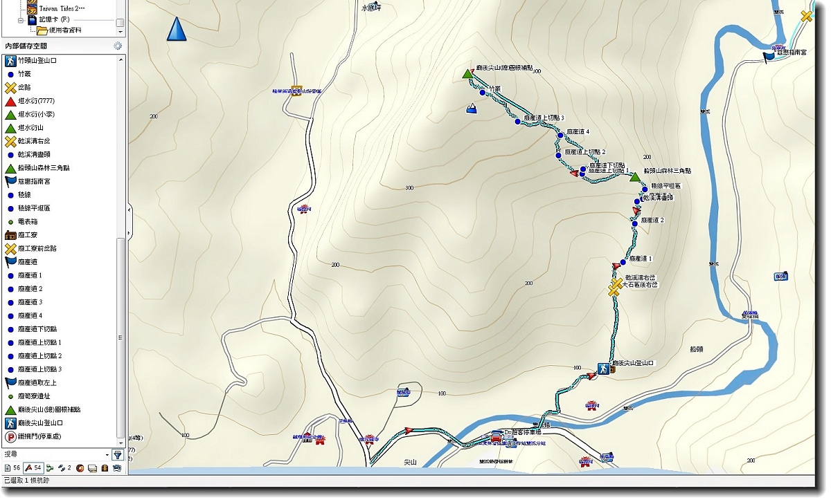 (如今校對發現Garmin座標三角點與實際座標相差約60公尺)如下放大圖-1