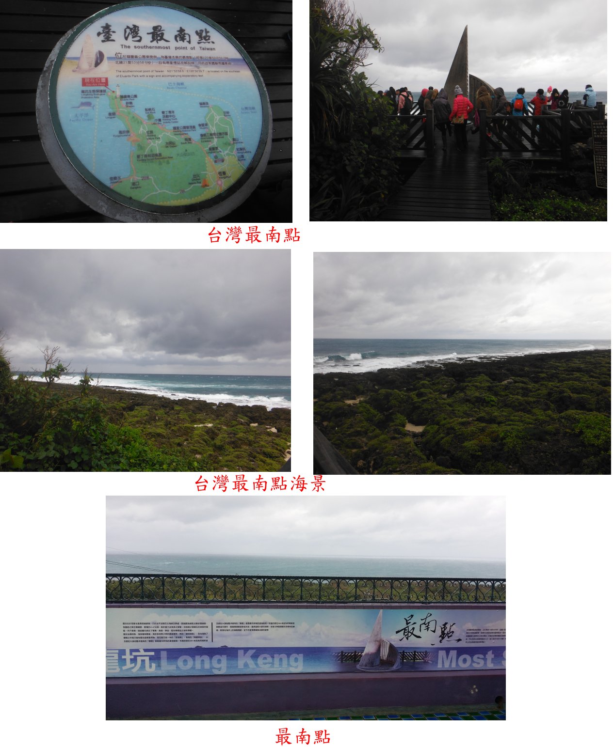 墾丁之旅樂樂已辦過數次,南仁湖卻都遇到封閉無緣進入,此回長官們邀約再辦一次墾丁三日遊;僅就此行以前沒去過的龜山、南仁湖與欖仁溪生態之旅等景點簡述如下;首先的龜山觀日落,龜山3-461原點已遺失,步道走16分鐘即抵達步道終點觀景台,為絕佳的觀日落私房景點,可惜天候欠佳;第二個為南仁湖景點,步道全長4.3K,去程走1小時又37分鐘,回程走61分鐘,屬生態自然保育區;第三個景點為欖仁溪生態之旅,於里德社區享用當地的風味餐,之後由解說員帶領下溯欖仁溪至終點的欖仁溪瀑布,頗有特色的生態之旅,往返費時1小時又20分鐘。