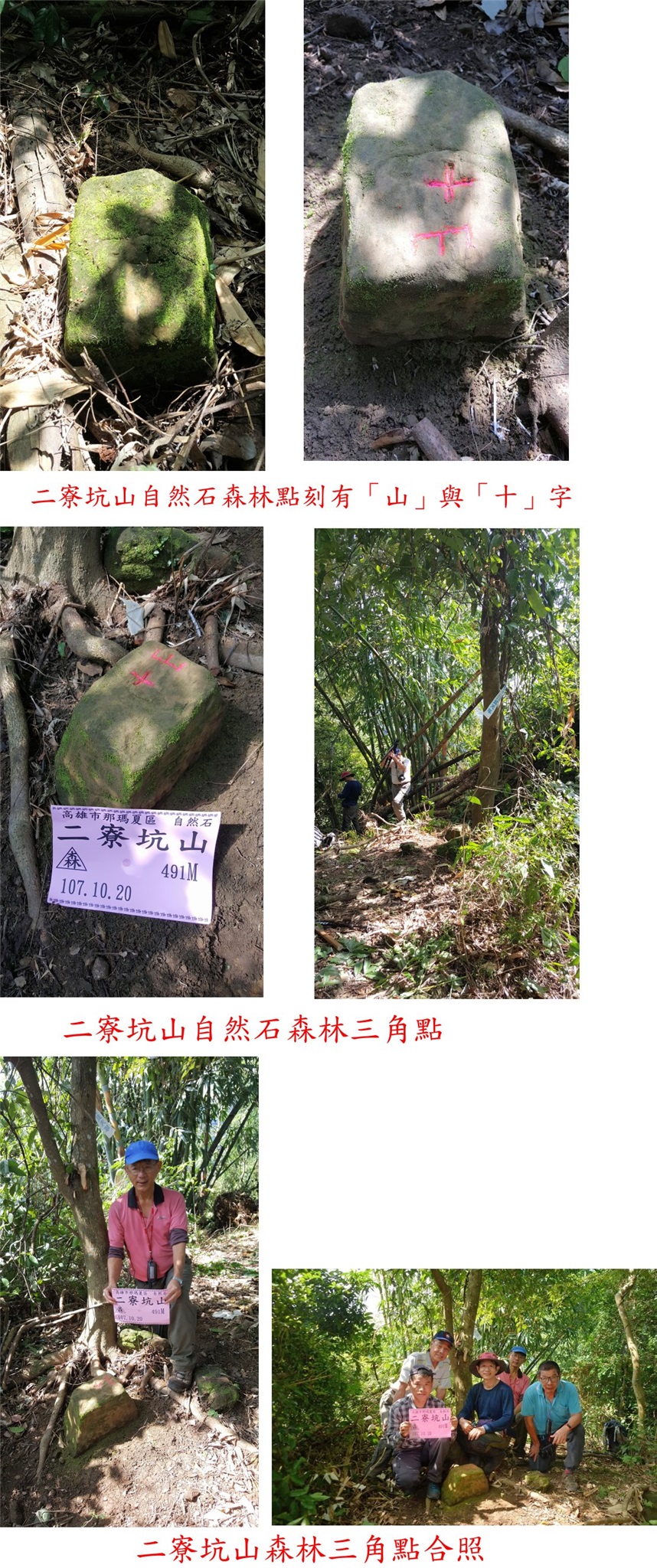 4、二寮坑山:位於高雄市那瑪夏區,標高474公尺,自然石森林三角點;座標212766 2574049。