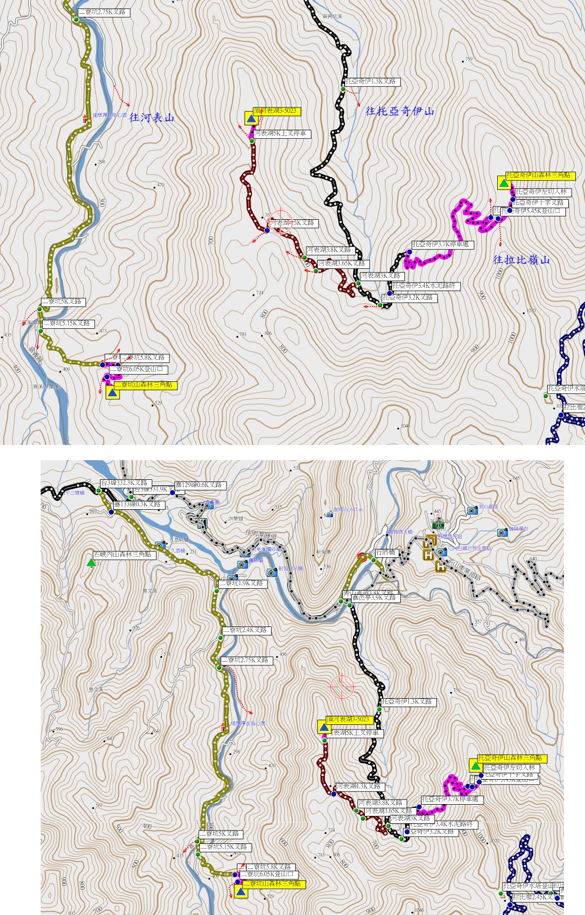 1、托亞奇伊山:位於高雄市那瑪夏區,標高900公尺,森林三角點;座標215457 2575317。