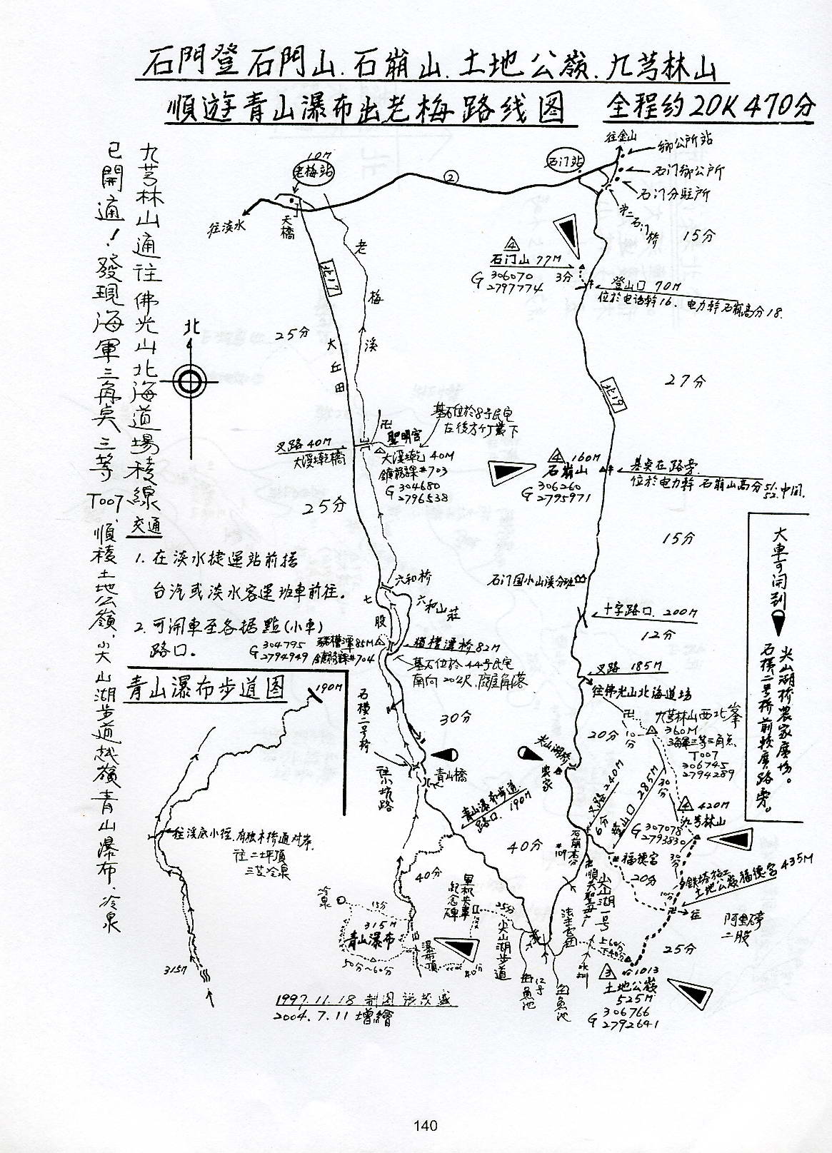 藍天圖集[6]石門登石門山,石崩山,土地公嶺,九芎林山順遊青山瀑布出老梅路線圖