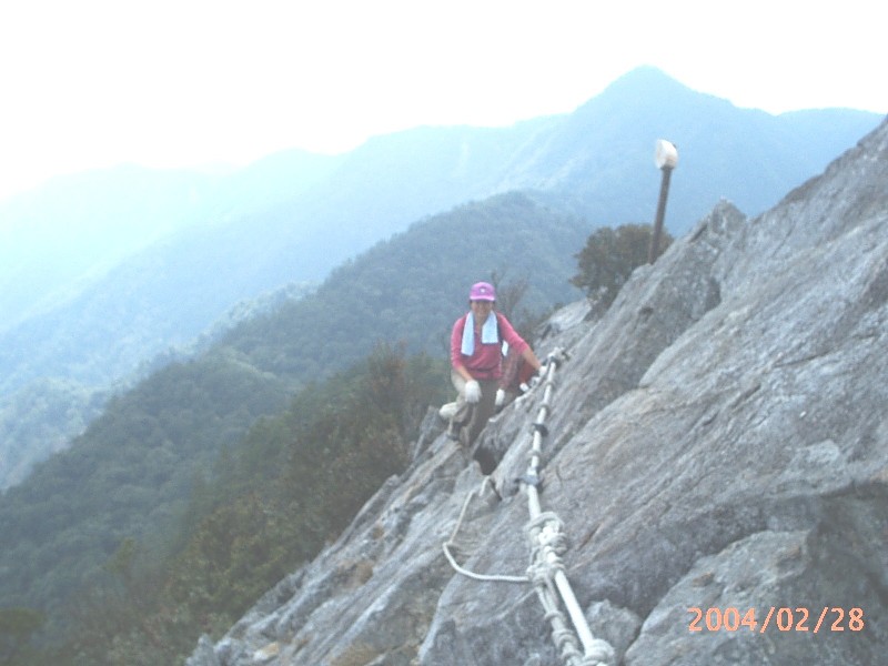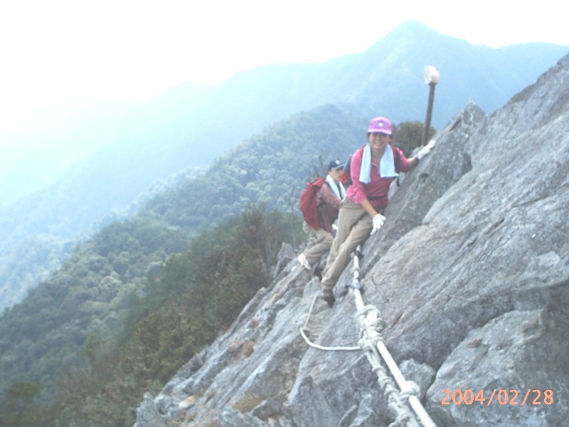 14:30出發前已做了許久的心理建設,心想可不要在鳶嘴山摔成肉餅了。小心翼翼的,而今日人又多塞車,大家都非常小心的排隊慢慢下坡,終於走完心驚動魄的岩稜區。