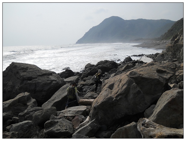 1010南田石海灘,海拔高度約5公尺,續前行海灘上依舊是南田石與漂流木。