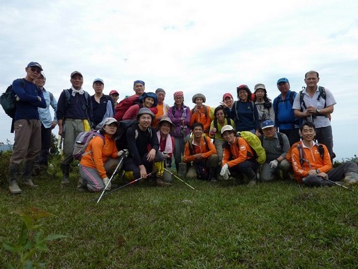 14:38~14:41 內寮山基點【又稱鹿窟尾尖,亦稱福德山 H553M 土地調查圖根點】,基頂四方展望。全體合影後取前續往桃源谷,沿途盡賞草原風情