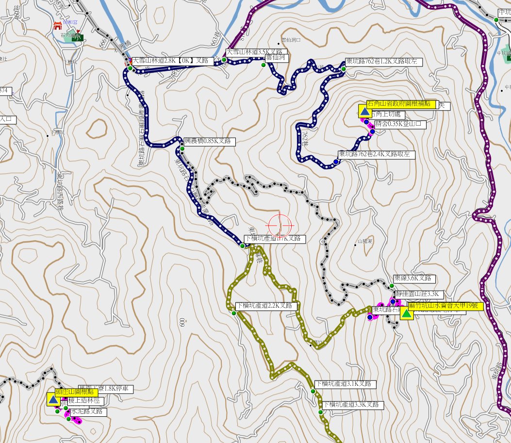 12/21約山友到台中找幾顆基石達人謝兄新找到的基石,早上走了東暗影等3座山,下午尋訪大雪山林道附近的基石;第1座為麻竹坑山,正路應由下橫坑產道0.85K叉路至靜佳園山莊停車,誤走一條狹窄的農路於山莊下方停車,多走一小段但也只要13分鐘即登頂,早年來時只有森林三角點,山友又找到1顆大甲19號來補;第2座為石角山,由大雪山林道3.5K叉路,右轉東坑路762巷上山走2.75K於精舍上方停車,走10分鐘即登頂,以前來時即有專賣局造林地4號與省政府圖根補點等2顆基石,山友資料應另有1顆水資會大甲16號,此行來補卻找不到摃龜;第3座為大南坑山主峰的水資會大甲18號,由大雪山林道13K叉路,左轉農路走0.6K即登山口,沿著果園圍籬邊陡上走約70公尺上稜,取左順稜行走約80公尺,即見到基石,上山只要10分鐘;第4座為大南坑山的省政府圖根補點,順稜續行走5分鐘即抵達基石;