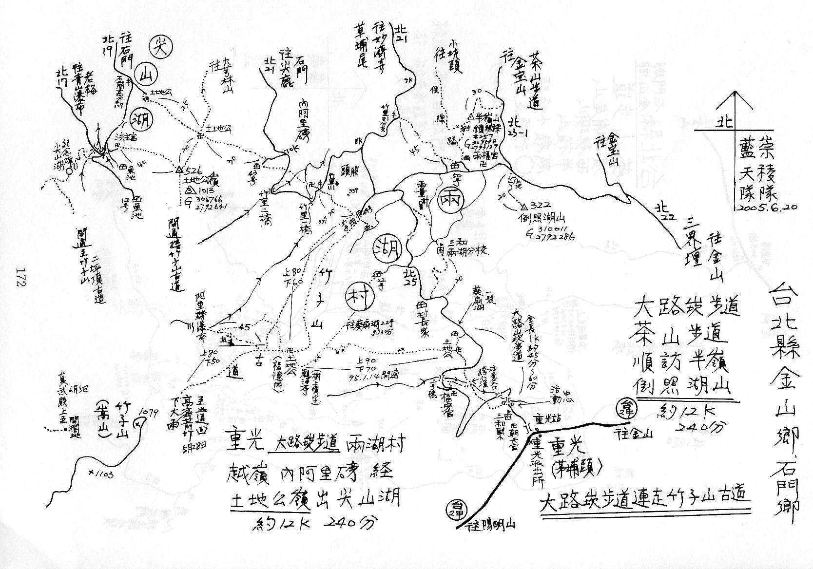 • 台北縣石門鄉金山鄉,大路崁步道,茶山步道,順訪半嶺,倒照湖山